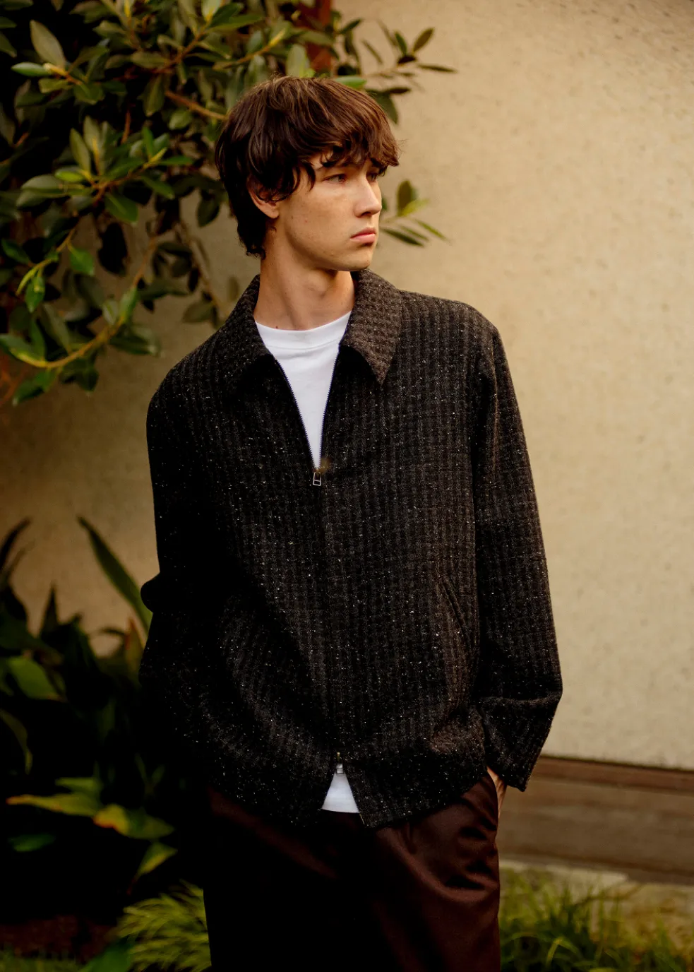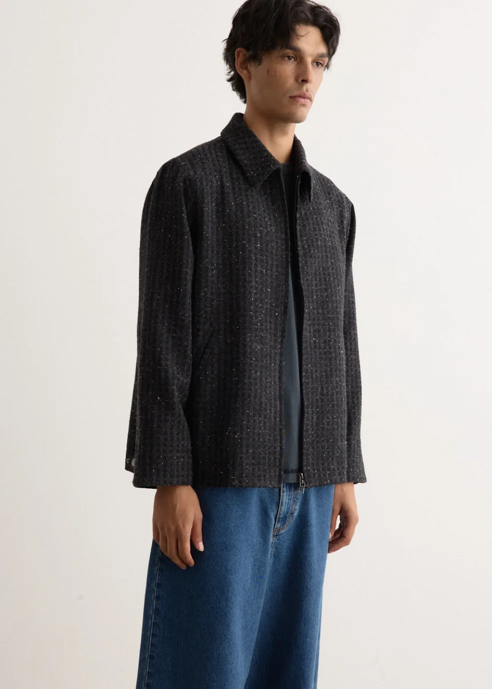 Incu Collection blends masculine and feminine styles creatively, offering refined tailored silhouettes and curated detailing for a unique and functional fashion statement. Crafted from a subtle check wool-blend tweed, the Admission Coach Jacket features a boxy fit that adds a contemporary edge to its classic design.