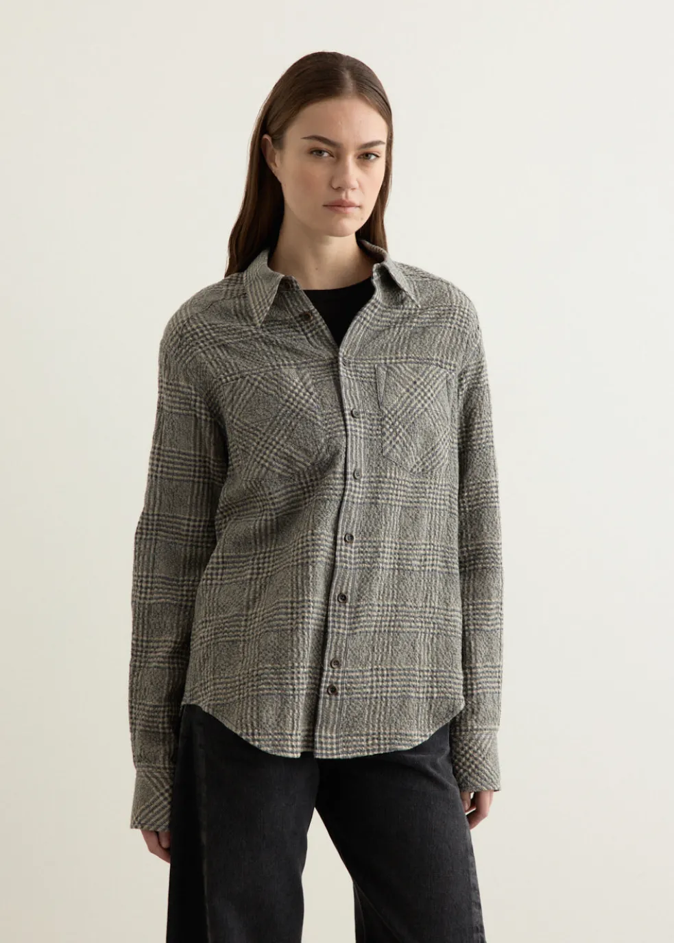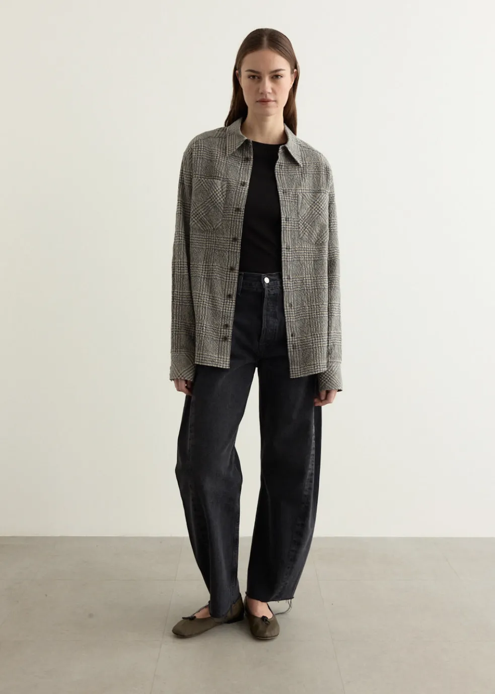Birthed in Seoul, Low Classic’s philosophy revolves around beauty through simplicity and is delivered via updated, classic silhouettes. Crafted from a cotton and wool blend twill weave, the Classic Shirt is cut to a relaxed unisex silhouette. Featuring an all-over checkered pattern, chest patch pockets, detailed with curved hems and an embossed logo button on the cuffs.