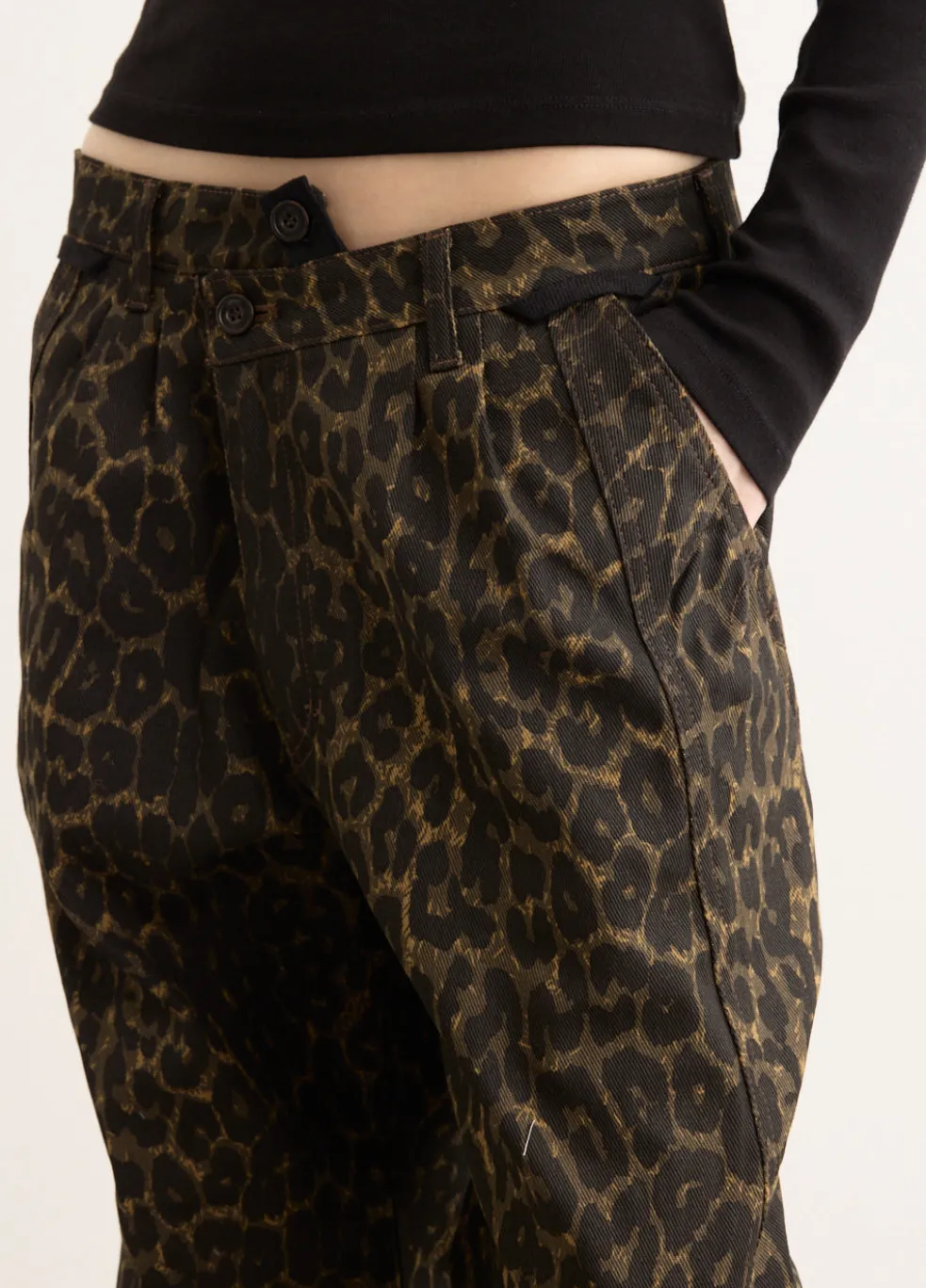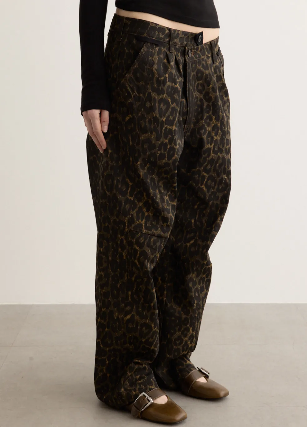 The identity of Andersson Bell was inspired by the merge of two contrasting cultures, reinterpreting Scandinavian aesthetic to create garments from a Korean perspective. Crafted from cotton denim and finished with an all-over leopard print, the Crossover Carpenter Jeans feature a distinctive asymmetric crossover front closure. Designed with a relaxed fit and low-rise waist, they deliver standout style while remaining effortlessly wearable for your weekly wardrobe rotation.