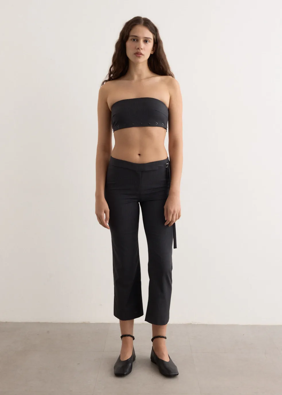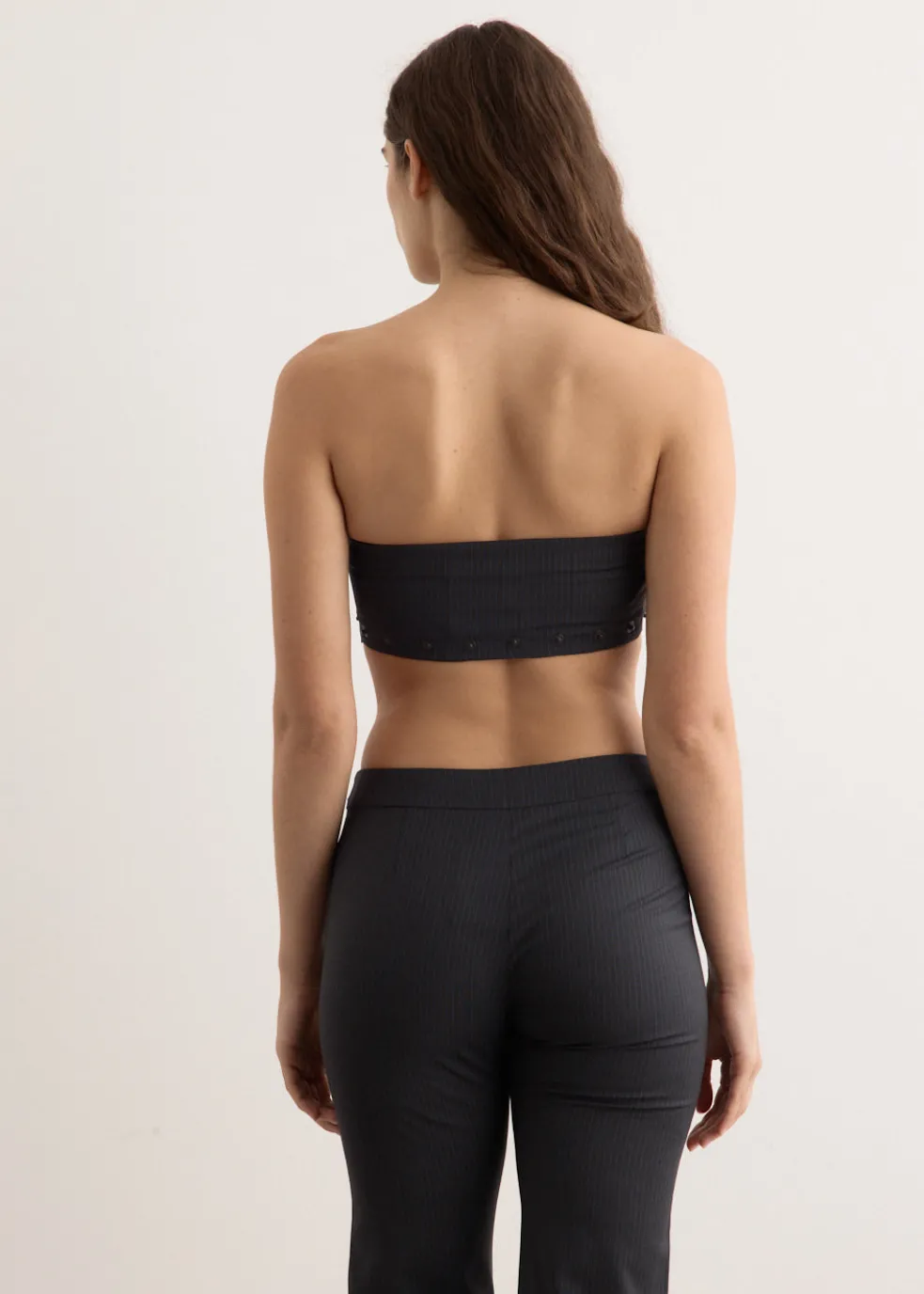 Barcelona-based brand Paloma Wool is renowned for its artisanal quality, retro silhouettes and the art of getting dressed. Crafted from the brand’s classic suiting fabrication, the Nita Top is a short bandeau top, detailed with snaps at the bottom and a side zip closure.