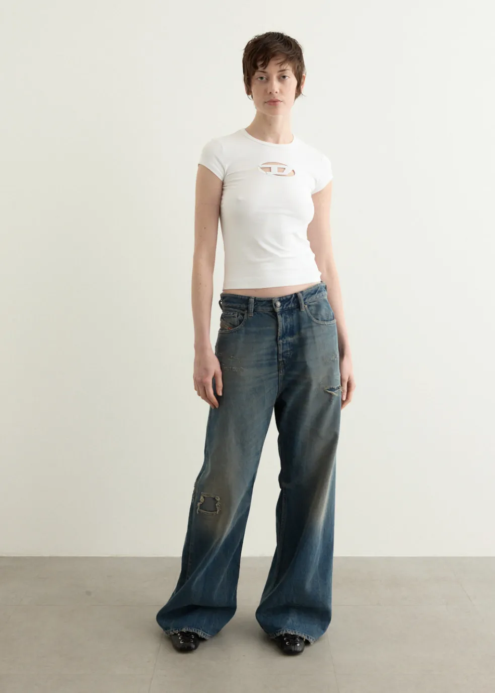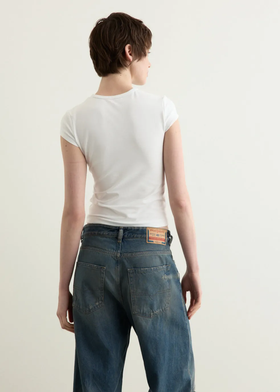Founded in 1978, Diesel is rooted in denim mastery, known for their nostalgic Y2K-inspired pieces to create a chic yet casual look. Sporting denim-heavy designs in their rebellious yet playful collections.Crafted from a cotton blend fabric with stretch, theT-Angie T-Shirt tailored to a slim fit. It features apeekaboo ‘Oval D’ logo on the chest made with a laser-cutting technique.