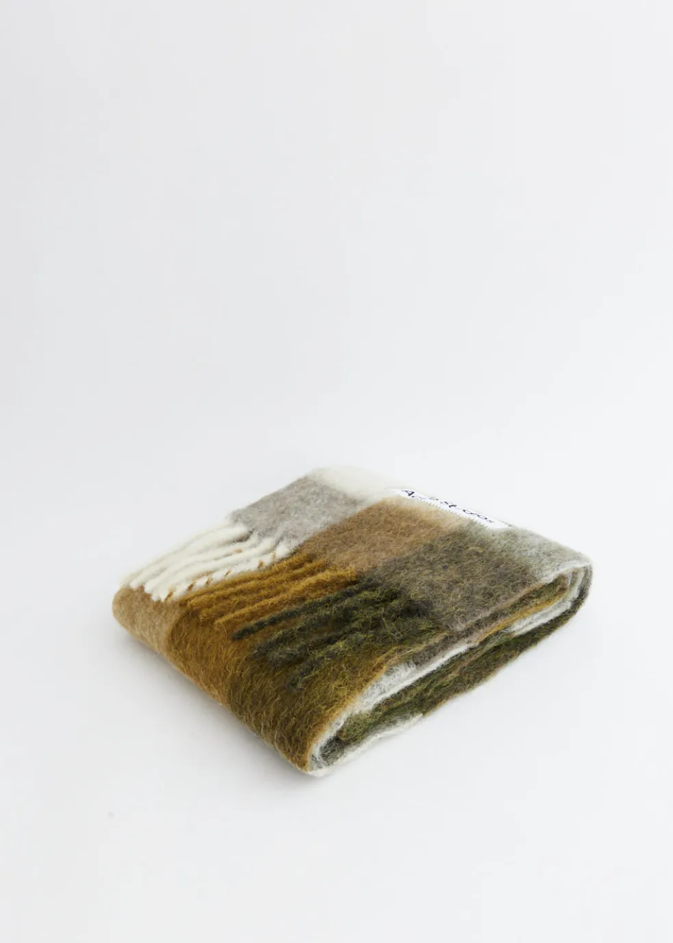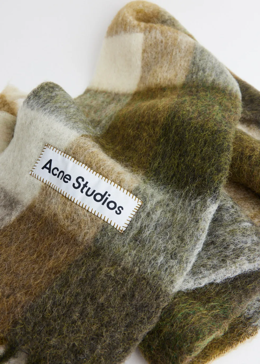 Defined by their experimental take on Scandinavian minimalism, Acne Studios blends technical design with an unexpected palette and androgynous style. Crafted from a soft and hairy mohair blend, theVally Scarf is adorned with a checkered pattern and is detailed with a logo patch.