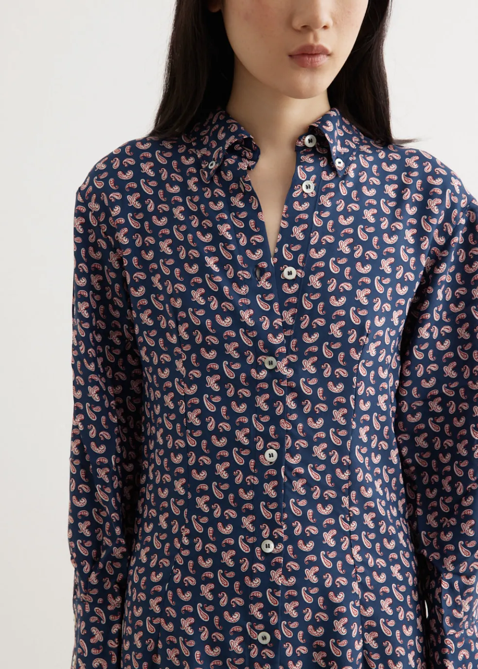 Established in 1987 by fashion designer Jean Touitou, A.P.C. is known for its relaxed and minimal approach to design. Crafted from fluid viscose, the Vanessa Dress is cut to a relaxed, ankle length silhouette and is adorned with an exclusive paisley print. Featuring a classic collar, button down closure and a removable belt for an adjustable look.