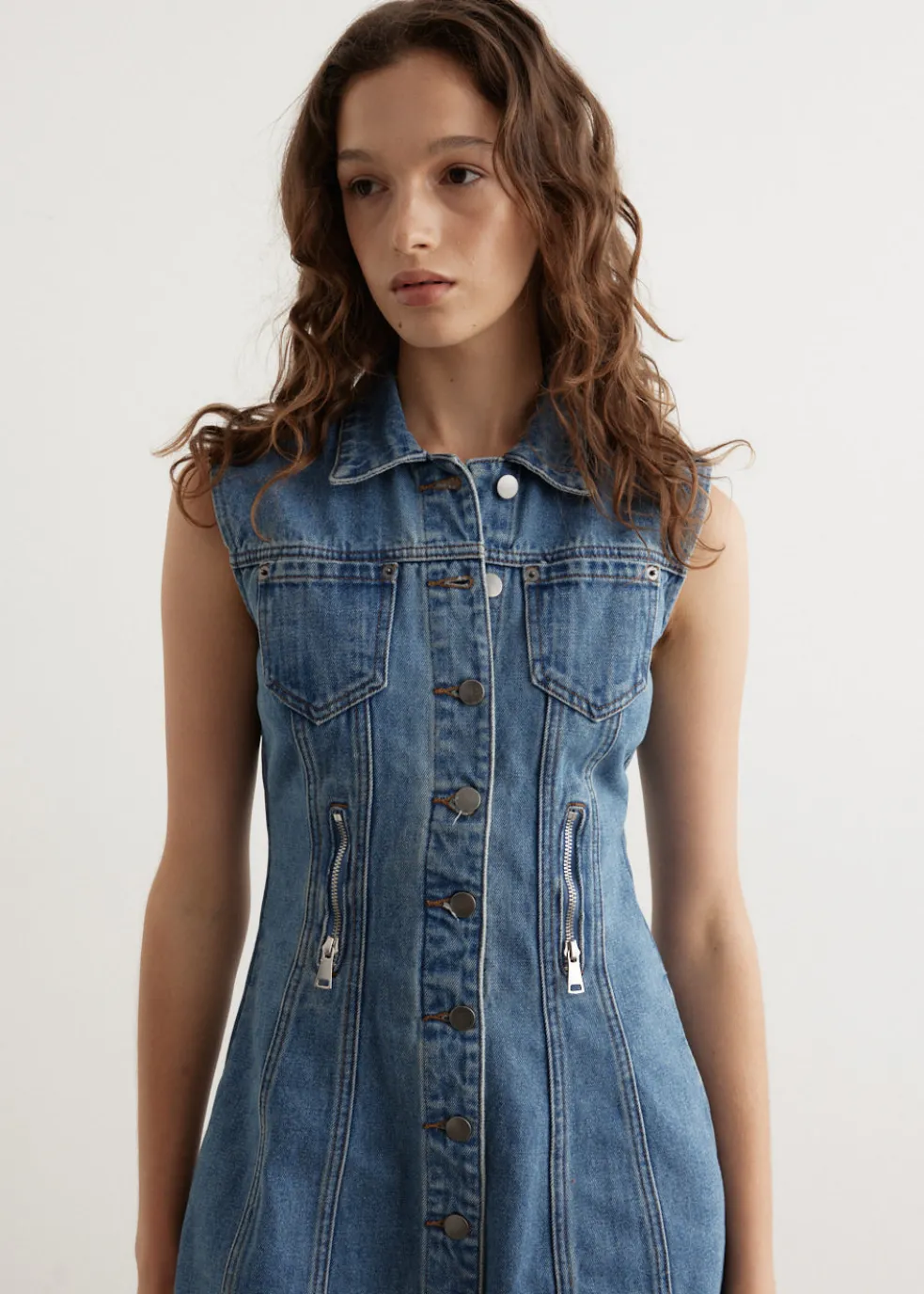 Auckland-based designer Wynn Hamlyn founded his eponymous label in 2014. Hamlyn finds a harmony between the classic and the eccentric by paying intimate attention to the subtleties of the human form. Crafted from cotton denim, the Zipper Denim Mini Dress is adorned with custom zip detailing, a dome closure at the front placket and a contrast top stitching detail throughout.
