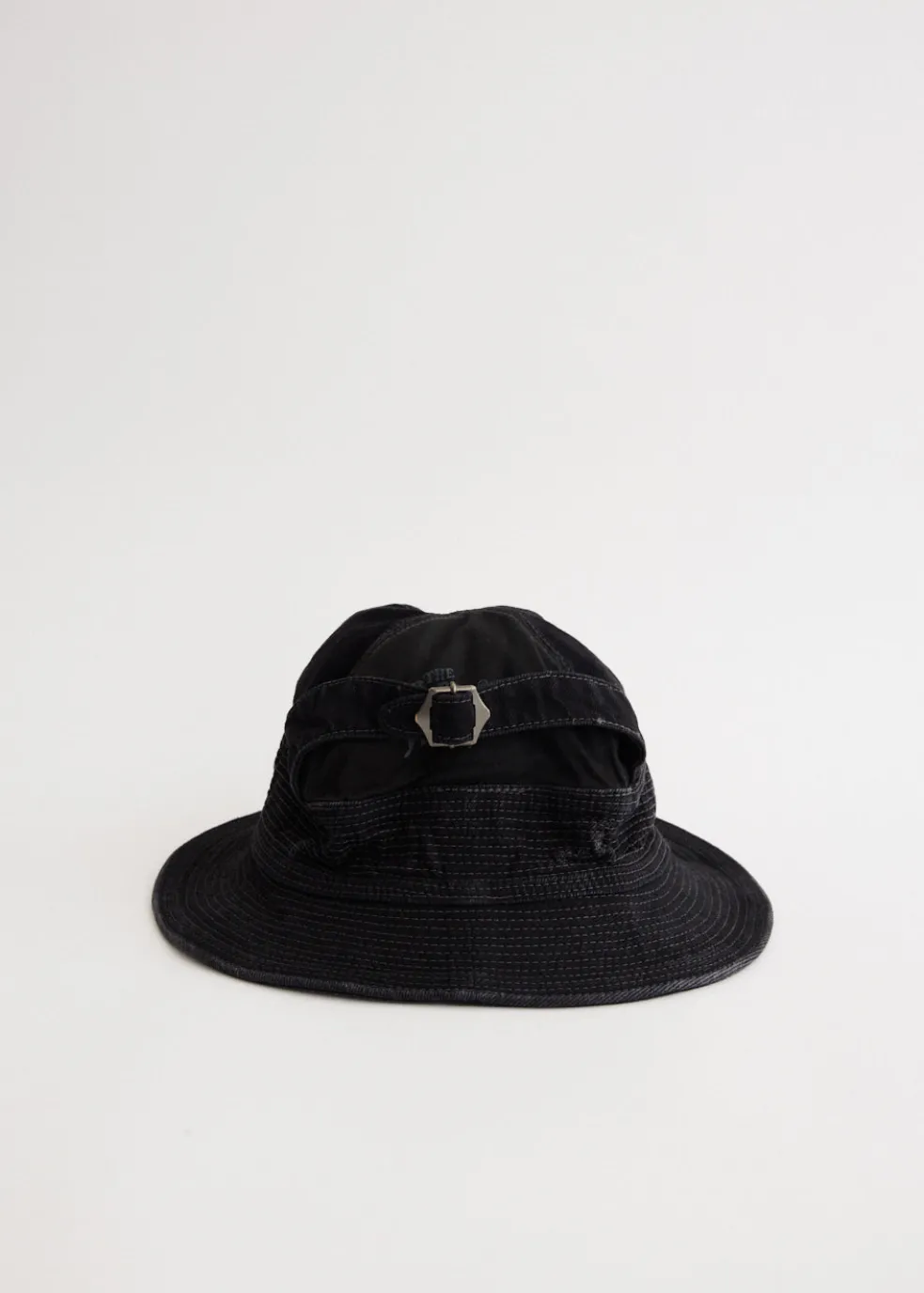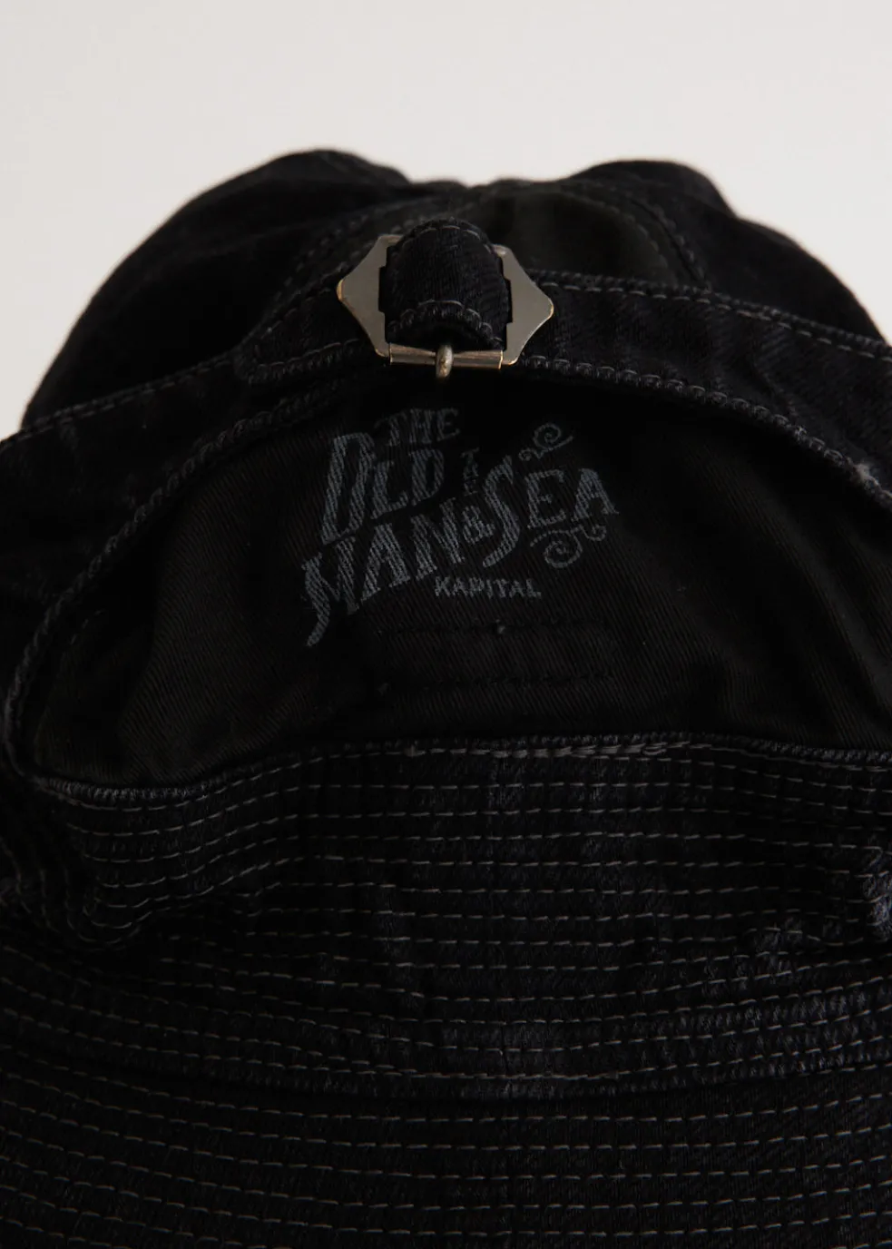 Paying homage to its hometown Kojima, Okayama – an area dubbed Japan’s denim capital – Kapital creates workwear-inspired pieces with a distinct edge. Crafted from black x black cotton denim, the11.5oz Denim The Old Man And The Sea Hat boasts a hand-stitched boro style and a buckle at the back.