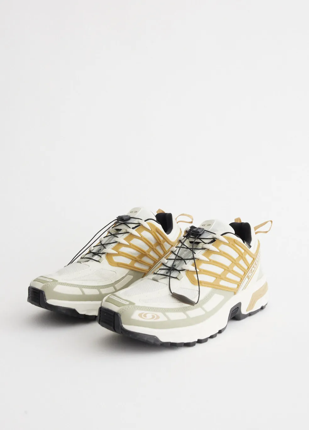 Salomon creates streetwear worthy sneakers originally designed for athletes undertaking ultra-distance races in harsh conditions. The ACS Pro GORE-TEX Sneakers offer the perfect balance between aesthetic and performance, equipped with an Agile Chassis® system for superior cushioning and stability and Contragrip® technology for maximum durability.