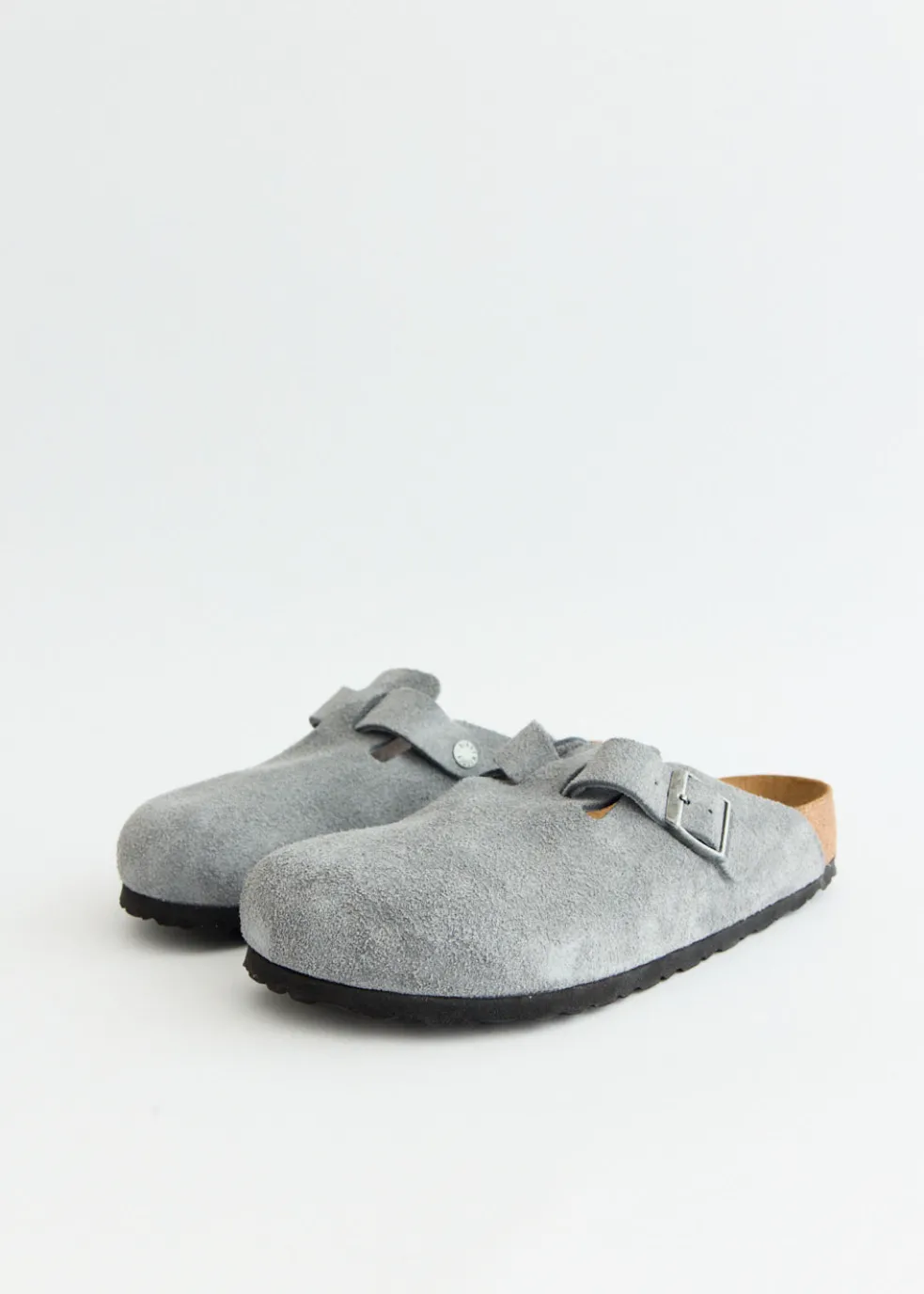 Established in 1774 in Germany, Birkenstock is one of the world’s oldest surviving footwear brands, for good reason. Known for their ergonomic designs and high-quality materials, slip into something comfortable from the latest collection. Crafted with a suede leather upper, the Boston Regular Slides feature a soft footbed for all-day comfort and an adjustable strap with a buckle for a custom fit.