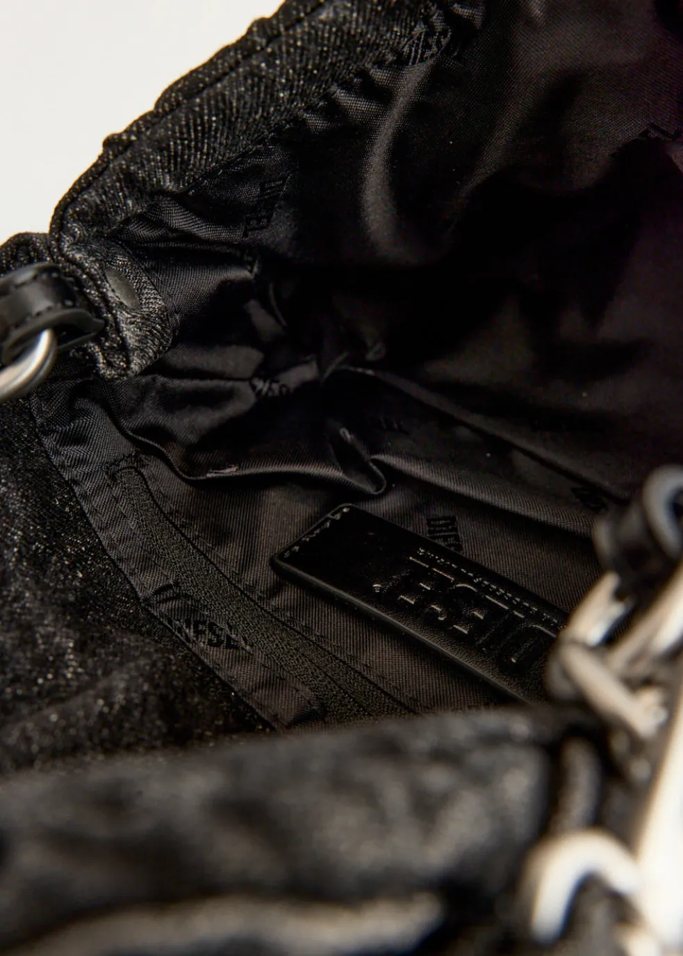 Founded in 1978, Diesel is rooted in denim mastery, known for their nostalgic Y2K-inspired pieces to create a chic yet casual look. Sporting denim-heavy designs in their rebellious yet playful collections. Crafted from quilted denim with a treated finish, the CHARM-D Shoulder S Denim Bag features a front flap with an internal zipped pocket for easy organisation, a soft denim handle for everyday ease, while a longer strap – combining denim and matte silver-tone chain – is adorned with rhinestone Diesel letter charms that drape across the front or detach to wear as a bracelet.