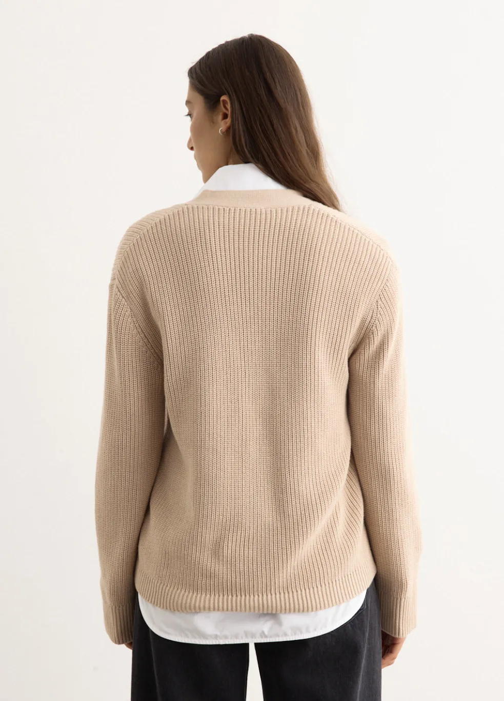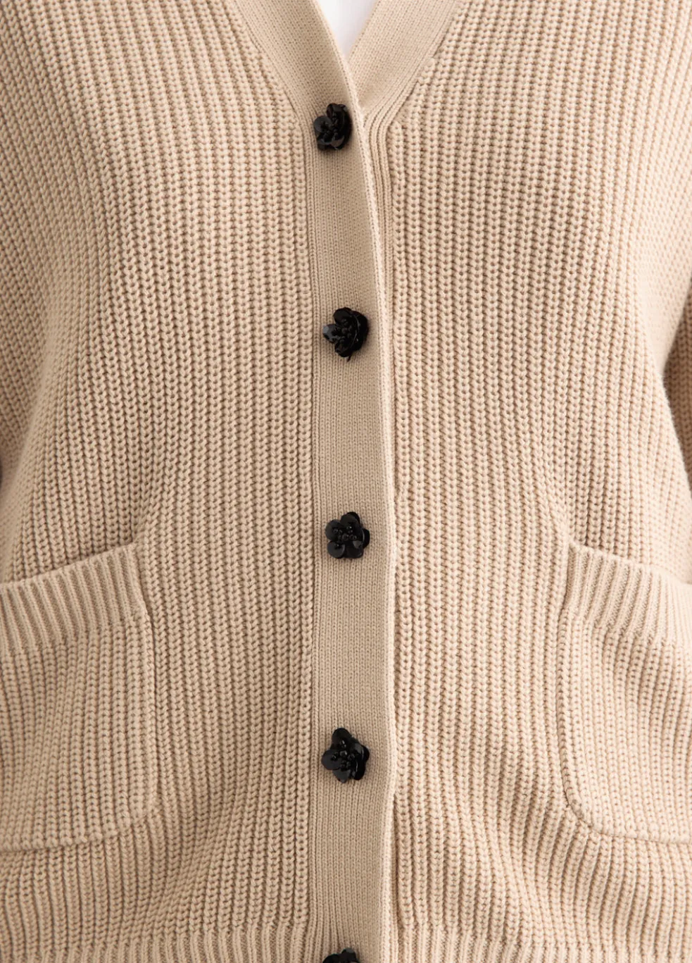 Brainchild of the designer duo Rikke Baumgarten and Helle Hestehave, Baum und Pferdgarten is the Danish label that blends modern feminine style with a playful sensibility. Knitted from organic cotton, the Ciara Cardigan is an oversized ribbed knit cardigan, perfect for layering on slightly colder days. Featuring a v-neckline, a front sequin appliqués snap button closure and two patch pockets on the side.