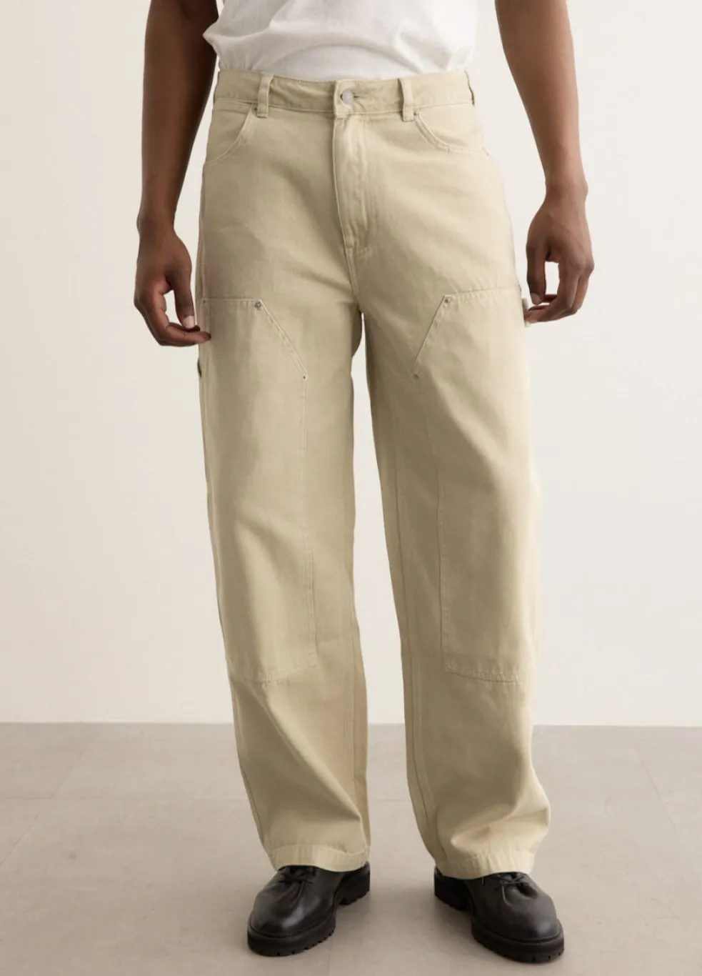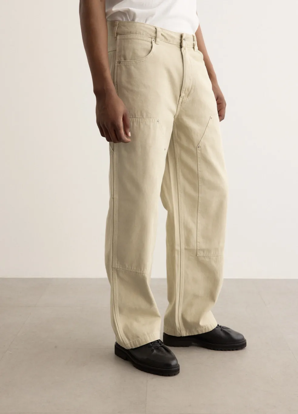 Melbourne-based label Larriet takes its name from the word ‘lasso’, an act of unifying elements with purpose. It represents the brand’s commitment to blending timeless silhouettes with practicality. The Double Knee Carpenter Pant is crafted from heavyweight cotton canvas, treated with a specialised dyeing process to achieve a worn-in look and soft hand feel. Designed with a relaxed fit, the pants feature utilitarian details including a utility pocket, hammer loop at the thigh, and triple-stitched leg seams. Custom star-shaped rivets accent the reinforced knee panels, adding a distinctive Larriet signature.