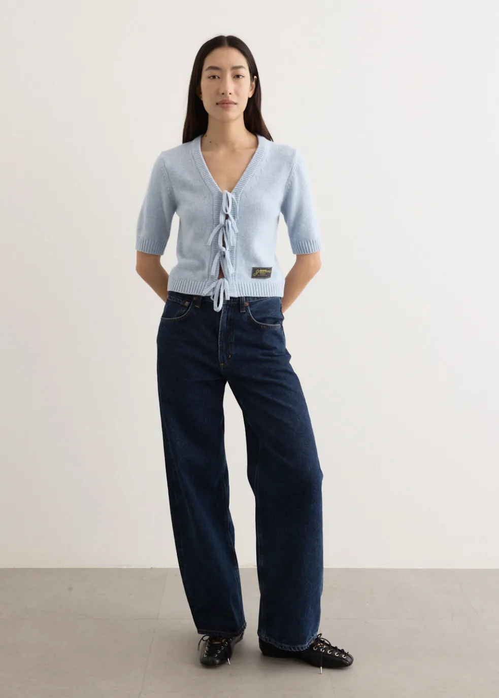 Danish label Ganni blends streetwear trends with a playful touch of humour through bold prints and colour palettes, voluminous silhouettes and easy-to-wear fabrics. Knitted from a recycled wool blend, the Future Wool Mix Short Sleeve Cardigan is an elevated take on a classic cardigan with its ties at the front. It’s finished with a sewn-on GANNI logo patch for a branded touch.