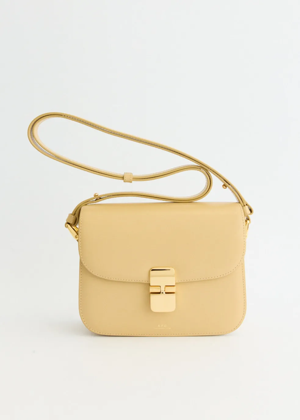 Established in 1987 by fashion designer Jean Touitou, A.P.C. derives from Atelier de Production et de Creation, and is known for its relaxed and minimal approach to design. The Grace Bag combines timeless sophistication with everyday practicality. Crafted from smooth leather, it features an adjustable strap for versatile wear and a gold-tone clasp for secure closure. Finished with the iconic logo, it’s an effortlessly refined addition to any wardrobe.