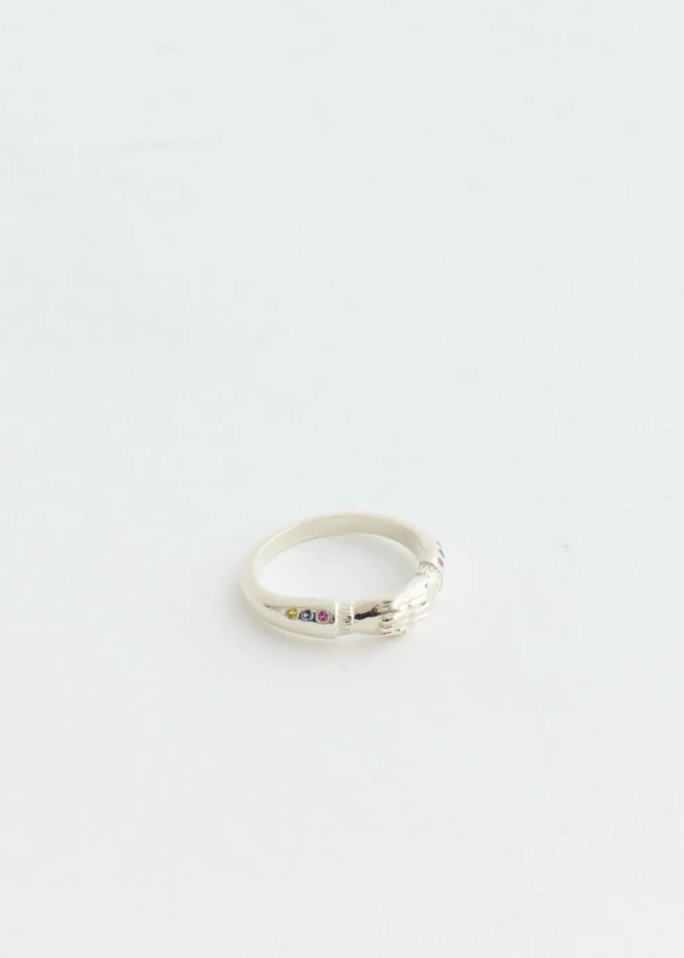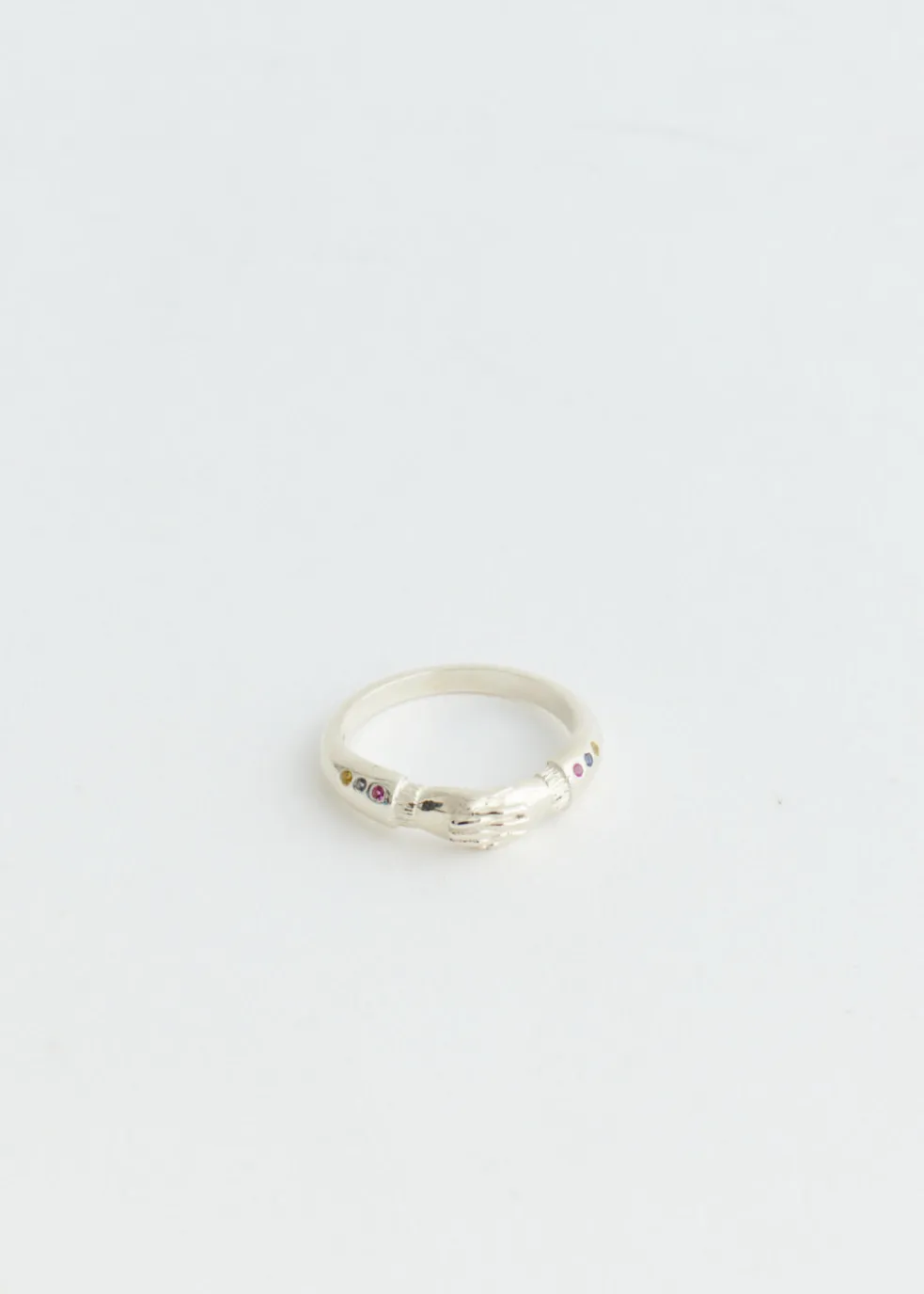 Founded in 2018, Bleue Burnham’s eponymous label aims to be “a force for good with genuine ambition to improve our current environmental position”, with carefully crafted jewellery made from precious stones and metals. The Hands of Thought Ring is crafted by hand from 925 sterling silver with6 setlab grown sapphires and holding hands carved at the centre.