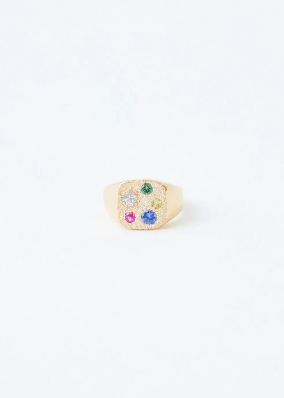 Founded in 2018, Bleue Burnham’s eponymous label aims to be “a force for good with genuine ambition to improve our current environmental position”, with carefully crafted jewellery made from precious stones and metals. The Hanging Basket Signet Ring is inspired by the fragrant gardens in the south of France, with scattered multi coloured sapphires set in 9k gold.