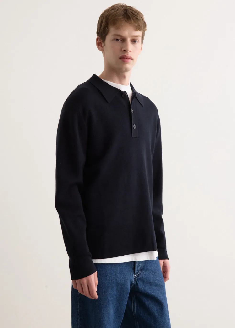 Self described as open minded and borderless, NN07 is a Danish-based label that blends minimalism in design with durability and timelessness. Crafted from soft wool knit blend, the Harald Polo is tailored to a regular fit. It features ribbed trims, and an open collar placket that compliments the relaxed cut of the piece.