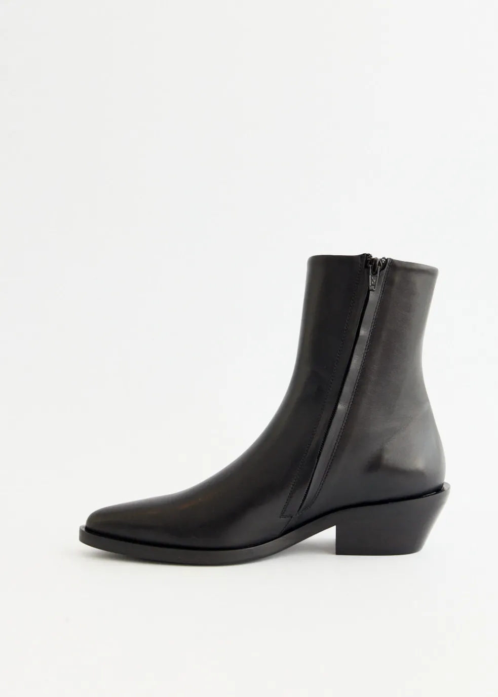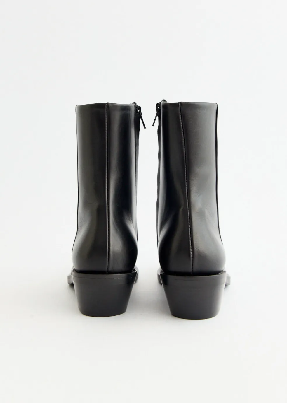 A.Emery sportsa collection of sleek, understated styles that reflects the brand’s Australian DNA.Designed in Melbourne and handcrafted in India, each pair is made from leather with signature minimalist details. The Hudson Boots are a minimal angular boot with a slim and high ankle, sitting atop a cuban heel, comfortable for everyday wear.