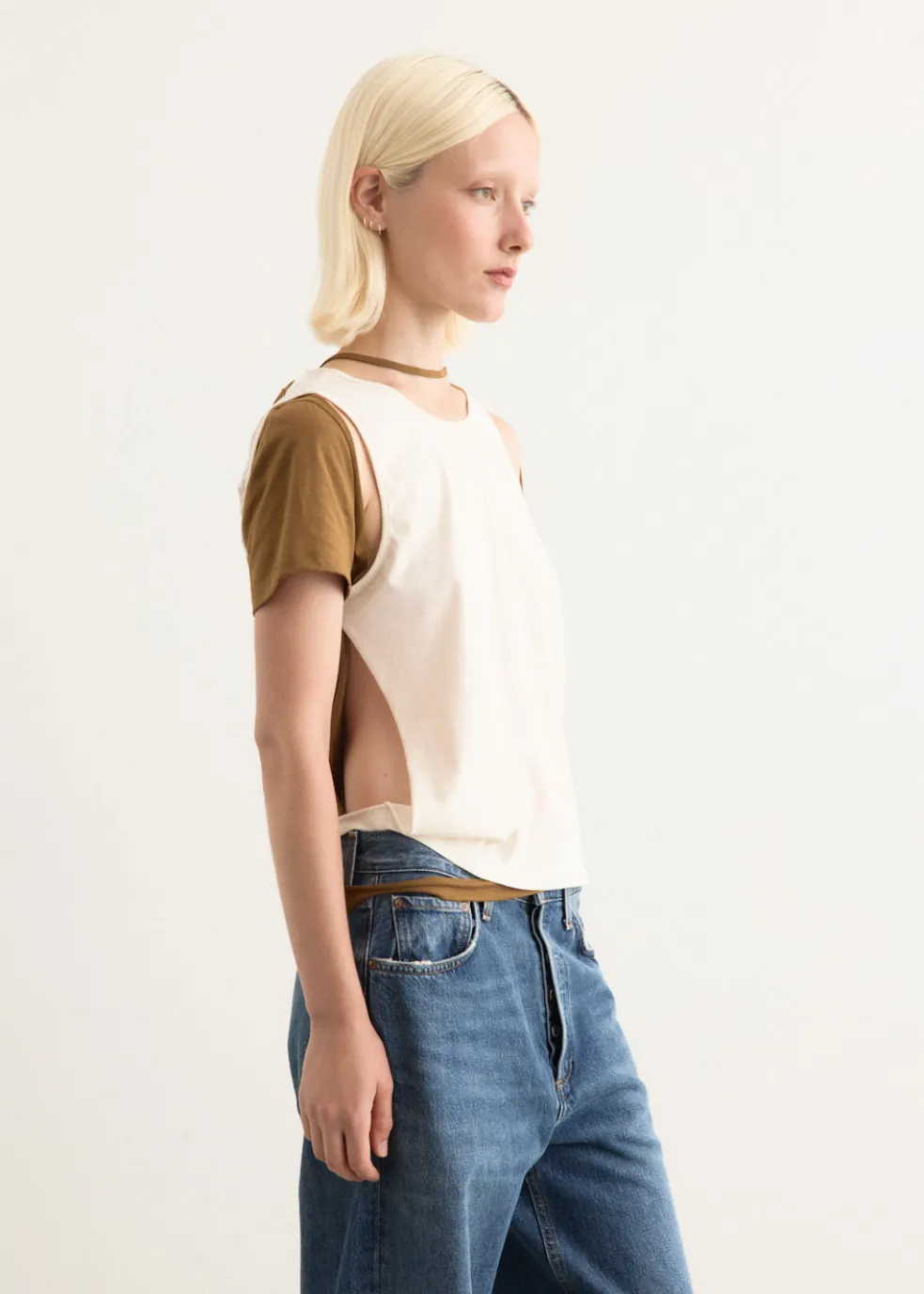Known for a gritty aesthetic and decidedly androgynous design, Eckhaus Latta offers up a collection that is all their own in originality through painterly prints, textures and silhouettes. Made from a lightweight cotton jersey, the Hugging T-Shirt features front and back bodies that overlaps when worn.