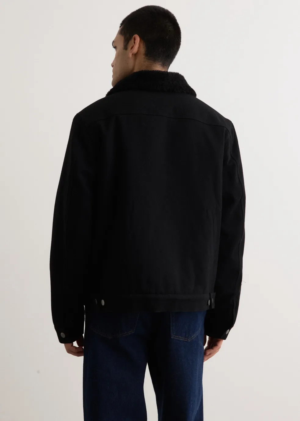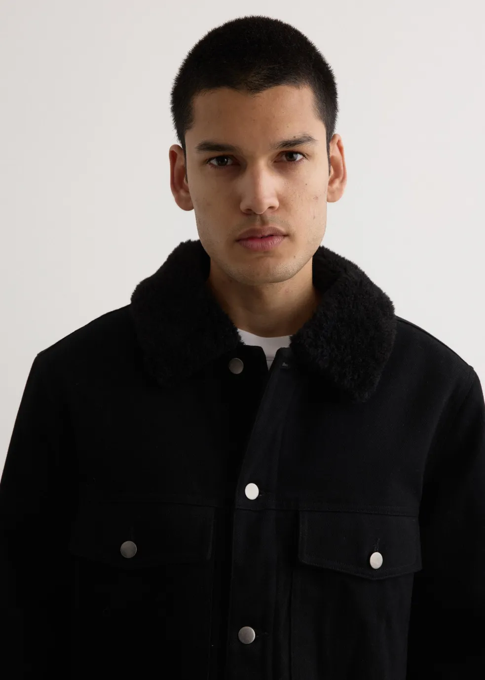 Incu Collection blends masculine and feminine styles creatively, offering refined tailored silhouettes and curated detailing for a unique and functional fashion statement. Crafted from cotton denim, the Ironclad Faux Shearling Jacket offers a modern update on the classic denim silhouette, featuring a relaxed fit and a plush faux shearling lining for added warmth and timeless style.