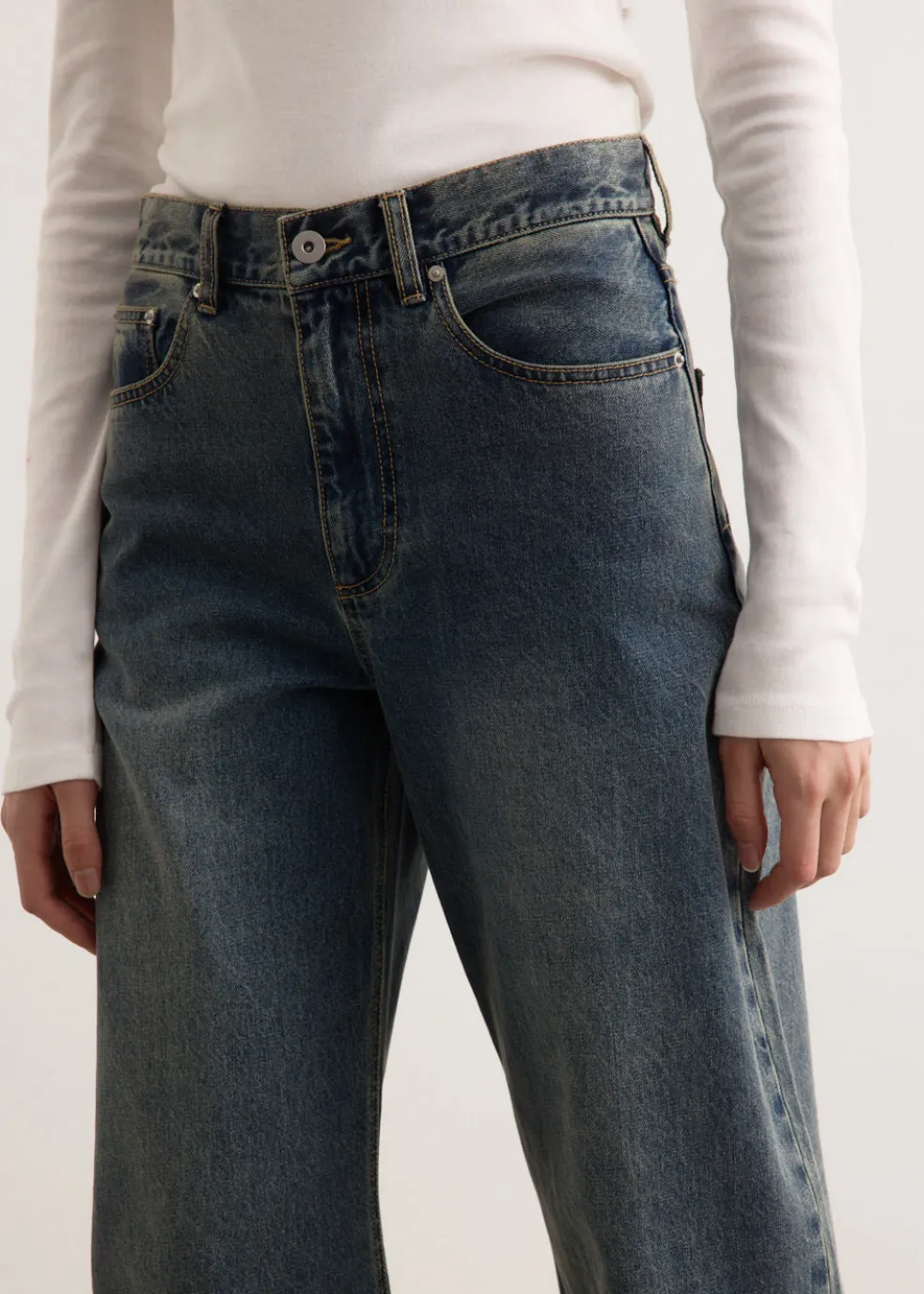 Add a trending style with classic appeal to your denim edit courtesy of the Kite Barrel Leg Jeans. Cut from pure cotton denim, the mid-rise silhouette offers a relaxed fit through the waist and signature curved legs. A dirty indigo wash is finished with faded details, furthering the vintage vibes.