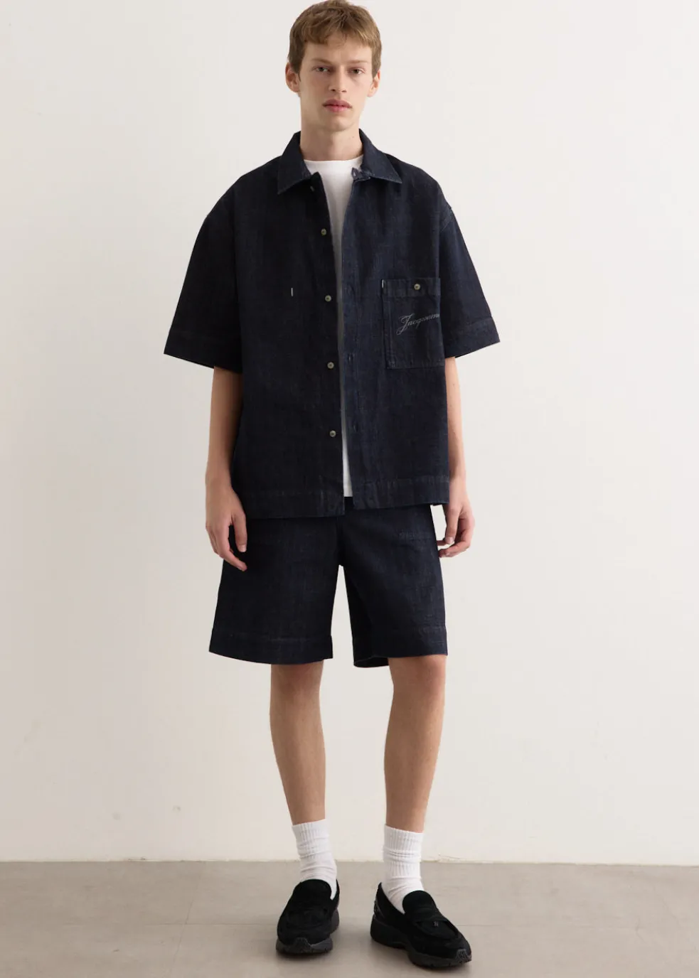 Vivacious and modernist French fashion-house, Jacquemus, can be described as a phenomenon. The brand’s accessories and ready-to-wear collections are consistently awe-inducing season after season. Made from dark navy cotton denim, the Le Short De-Nimes are cut to a knee-length, straight fit. Featuring a 5 pocket construction, mid-rise waist, “J” belt loop at the front and a laser-printed logo on the back pocket for a branded finish.