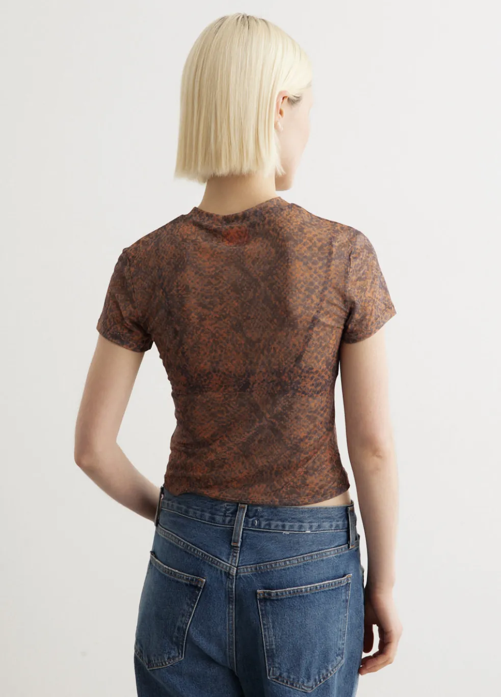 Incu Collection blends masculine and feminine styles creatively, offering refined tailored silhouettes and curated detailing for a unique and functional fashion statement. Crafted from sheer polyester mesh, the Lilith Printed T-Shirt is cut to a slim fit. Featuring a seasonal snakeskin print all-around.