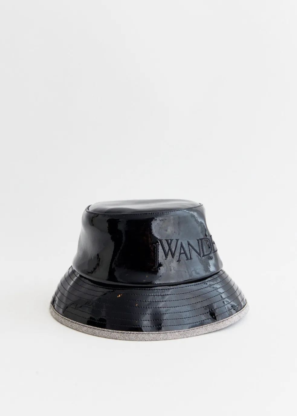 Heavily influenced by the British countryside and pop culture, JW Anderson blends luxury with casual charm using unexpected and bold palettes. Crafted from coated denim, the Logo Bucket Hat features a glossy finish, giving it an elevated look. An embroidered logo on the centre front adds a branded touch to this stylish accessory.