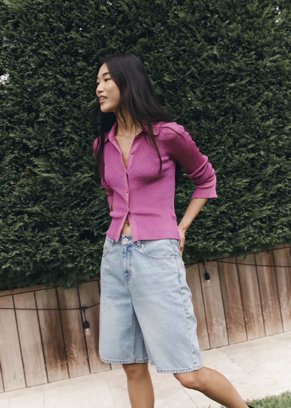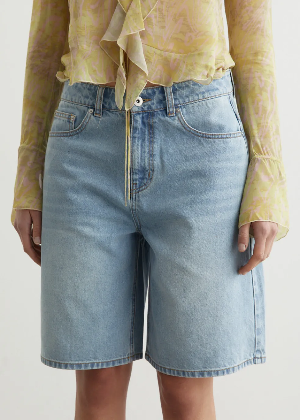 Incu Collection blends masculine and feminine styles creatively, offering refined tailored silhouettes and curated detailing for a unique and functional fashion statement. Crafted from an 11.4oz rigid cotton denim, the Lotus Denim Shorts have a knee-length cut. This style features five pockets and the brand’s recognisable stitching on the back pocket, along with a unique logo patch on the back waistband.