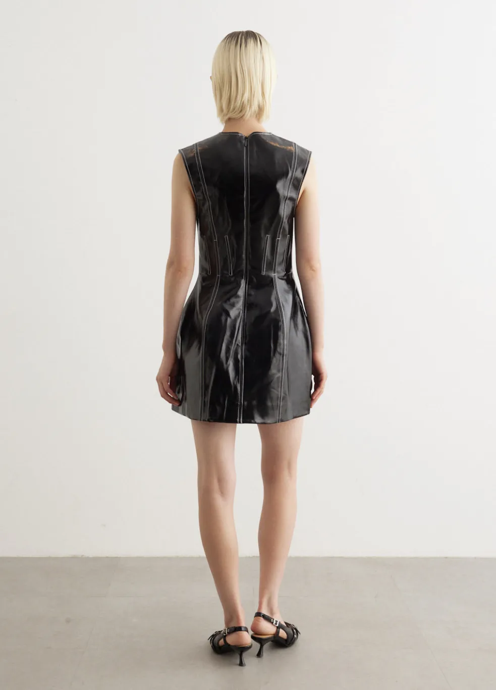 Kourh, a Sydney-based fashion label founded by designer Tarek Kourhani, breaks fashion norms by offering gender-neutral collections that combine sports casual and tailored elegance to encourage self-expression and inclusivity. Bringing a modern and edgy twist to a classic silhouette, the Marina Mini Dress is the perfect statement piece. With a high-shine finish and a structured silhouette, this dress is detailed with a v-shaped cutout at the centre front and contrast stitching, finished with a flared, mini skirt.