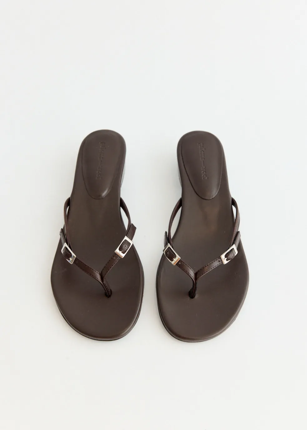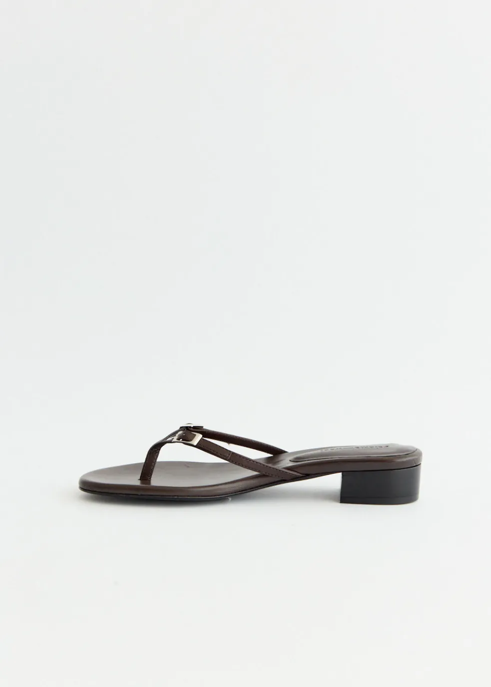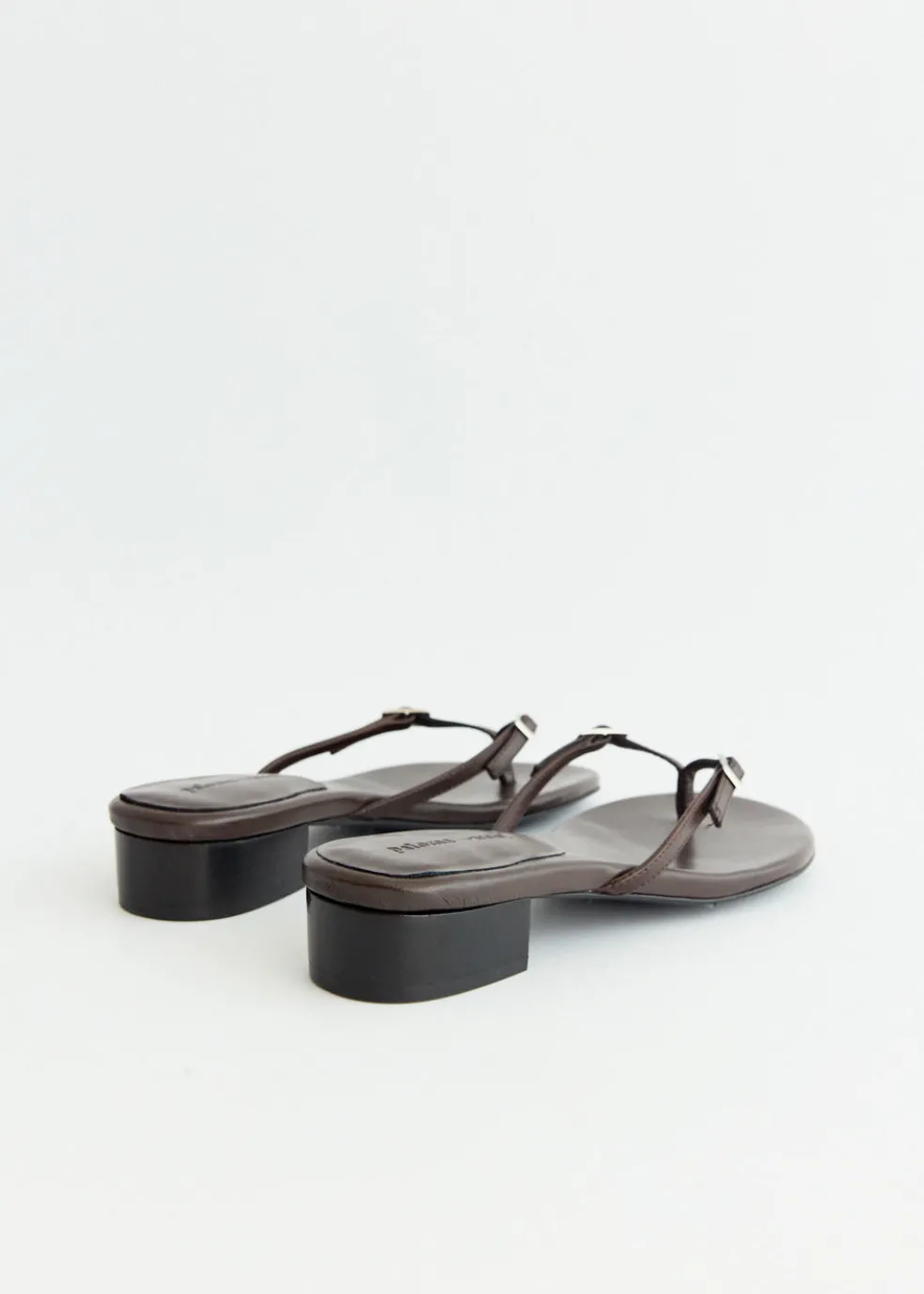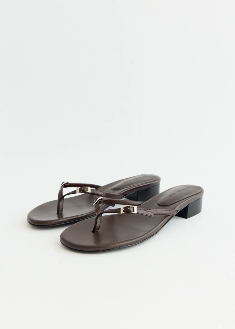 Barcelona-based brand Paloma Wool is renowned for its artisanal quality, retro silhouettes and the art of getting dressed. The Mica Sandals are crafted from leather, featuring a strap front with two small adjustable buckles, sitting atop a small block heel.