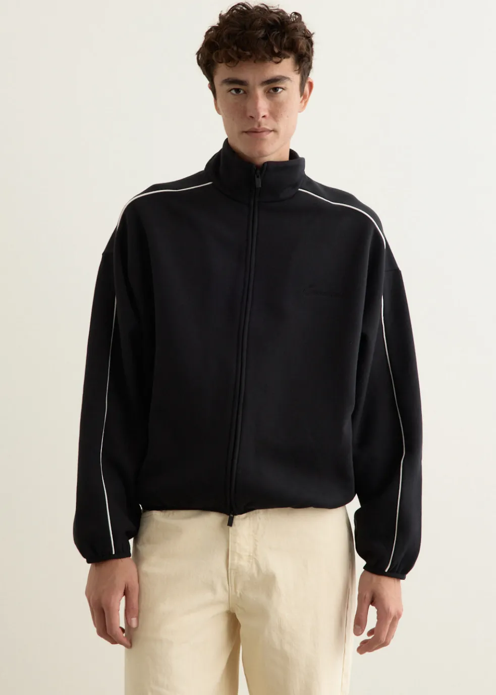 Launched in 2018 by Jerry Lorenzo, Fear of God: Essentials is a sub-label of his brand ‘Fear of God’, created to deliver minimalist, high-quality basics. Known for its neutral palettes, relaxed silhouettes, and everyday versatility, Essentials fuses streetwear with timeless design. Crafted from 380gsm core fleece, the Modern Fit Fleece Track Jacket is cut to a relaxed fit, featuring a full zip closure, side pockets and finished with a metal logo tag at the back neckline.