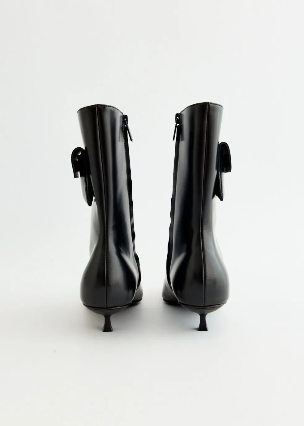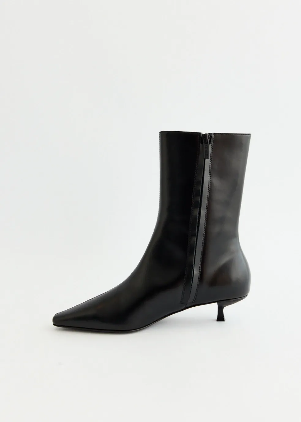 Founded in 2014 by Lara and Matt Fells in Byron Bay, St. Agni is an Australian design studio known for its minimalist aesthetic and refined tailoring. Initially creating handwoven leather accessories, the studio has evolved into premium ready-to-wear, focusing on versatility, longevity, and modern uniforms. The Petit Pouch Boot delivers a sophisticated square pointed toe silhouette that balances utility with refinement. Crafted from LWG-certified leather, the Petit Pouch Boot is designed with semi-sheen finish, a slim kitten heel, with a stitched mini side pocket for a unique and playful finish.