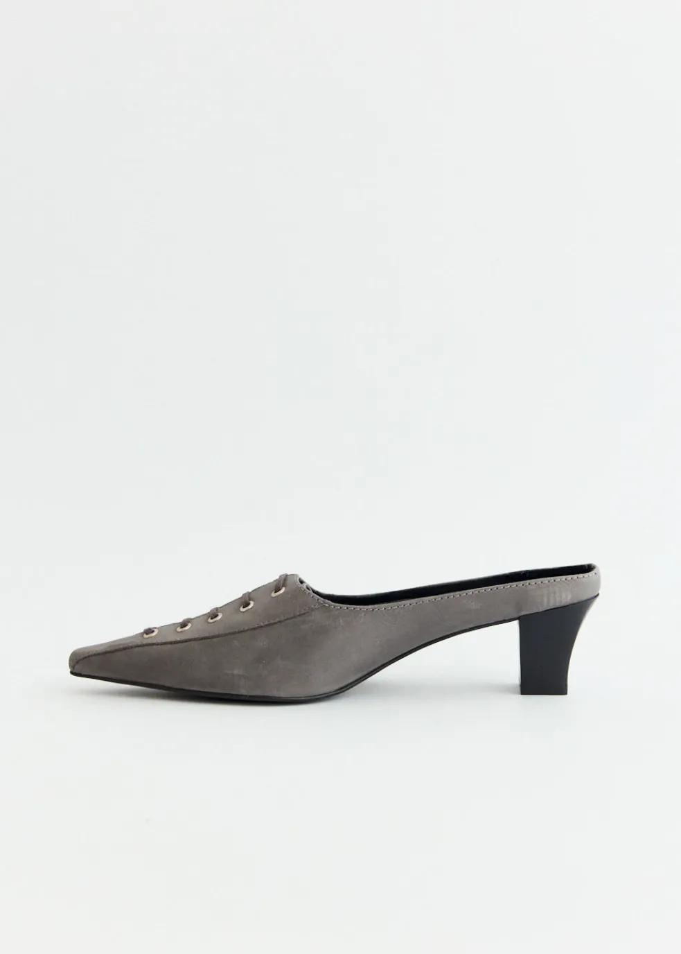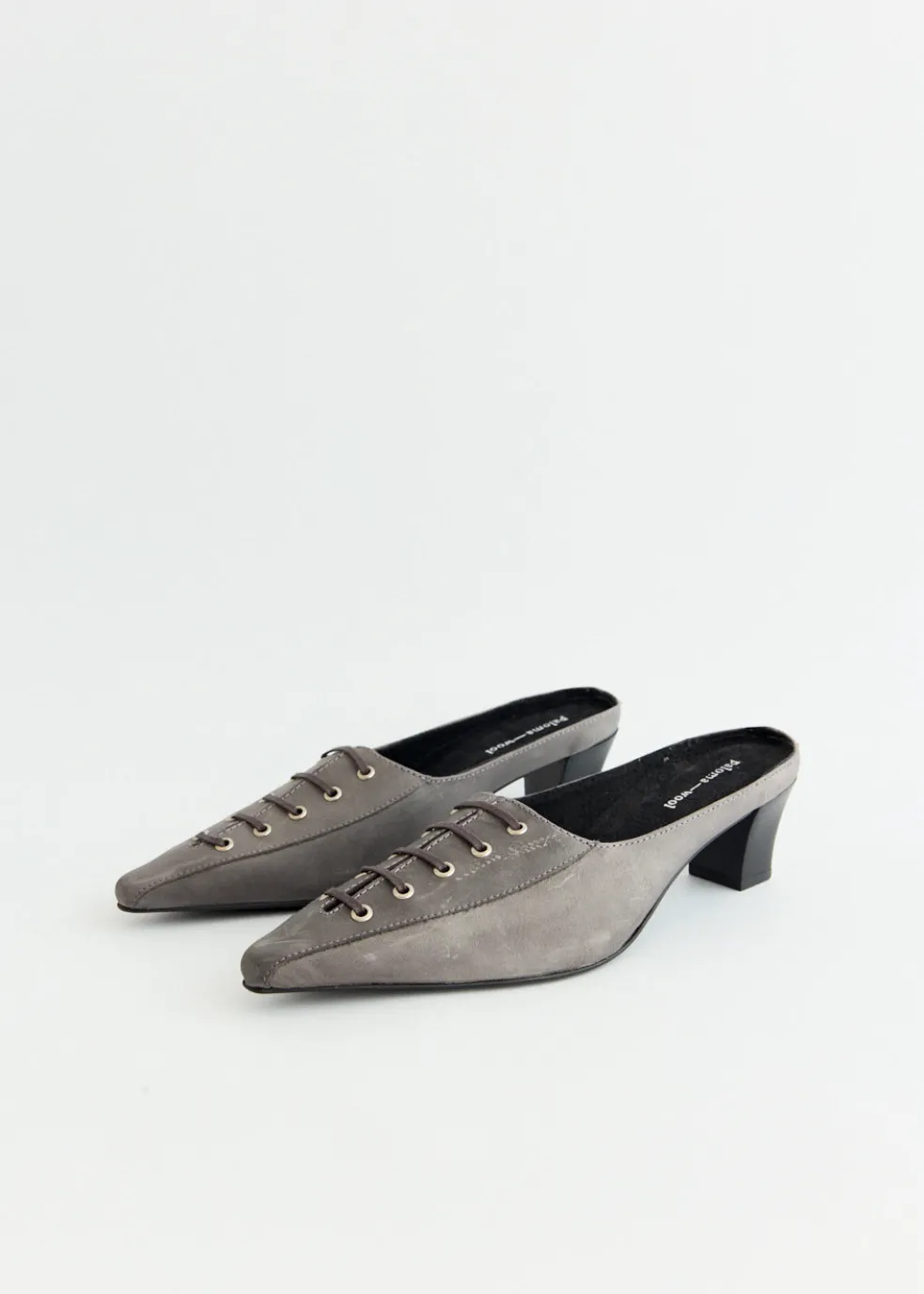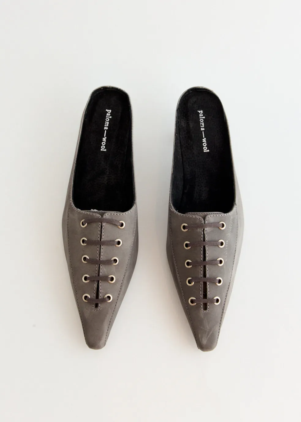 Barcelona-based brand Paloma Wool is renowned for its artisanal quality, retro silhouettes and the art of getting dressed. The Puy Heels are crafted from leather with natural finished. Designed with a lace-up, mule-style silhouette with a small heel.