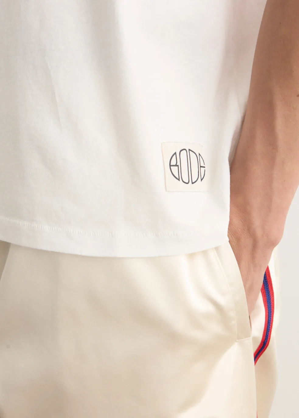 – Appliquéd Bode jock tag near hem