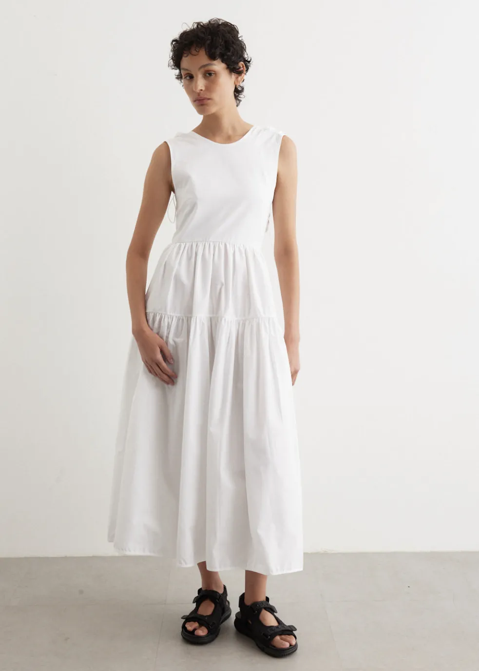 Cecilie Bahnsen, a Danish fashion designer, is renowned for her eponymous brand that blends traditional craftsmanship with contemporary design. Her collections, known for voluminous silhouettes and intricate textures, have earned acclaim for a modern, avant-garde take on femininity. The Ruth Gown is a maxi-length dress, that is designed with crisp cotton fitted bodice, balanced by a full skirt.