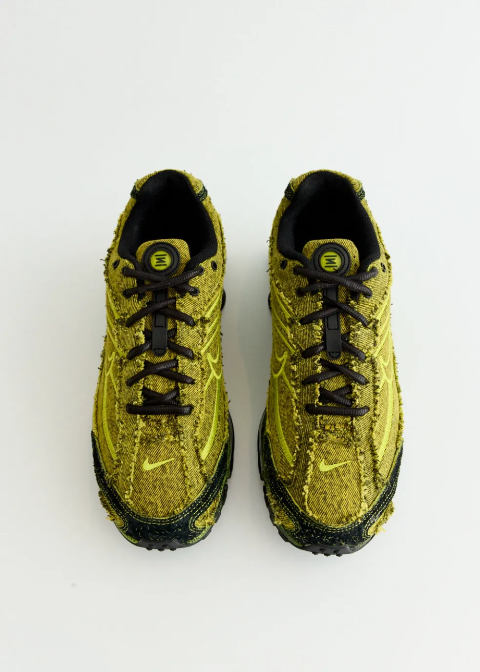 Nike has imagined and created functional, fashion-forward footwear and apparel in reflection of its sportswear roots since 1964. The Shox Ride 2 returns in bold early-2000s style, featuring responsive cushioning with four heel columns and a visible Max Air unit in the forefoot. This standout edition combines textile and shaggy suede in Bright Cactus and black, with raw edges that highlight its dynamic design. Blend into the grass, stand out everywhere else.