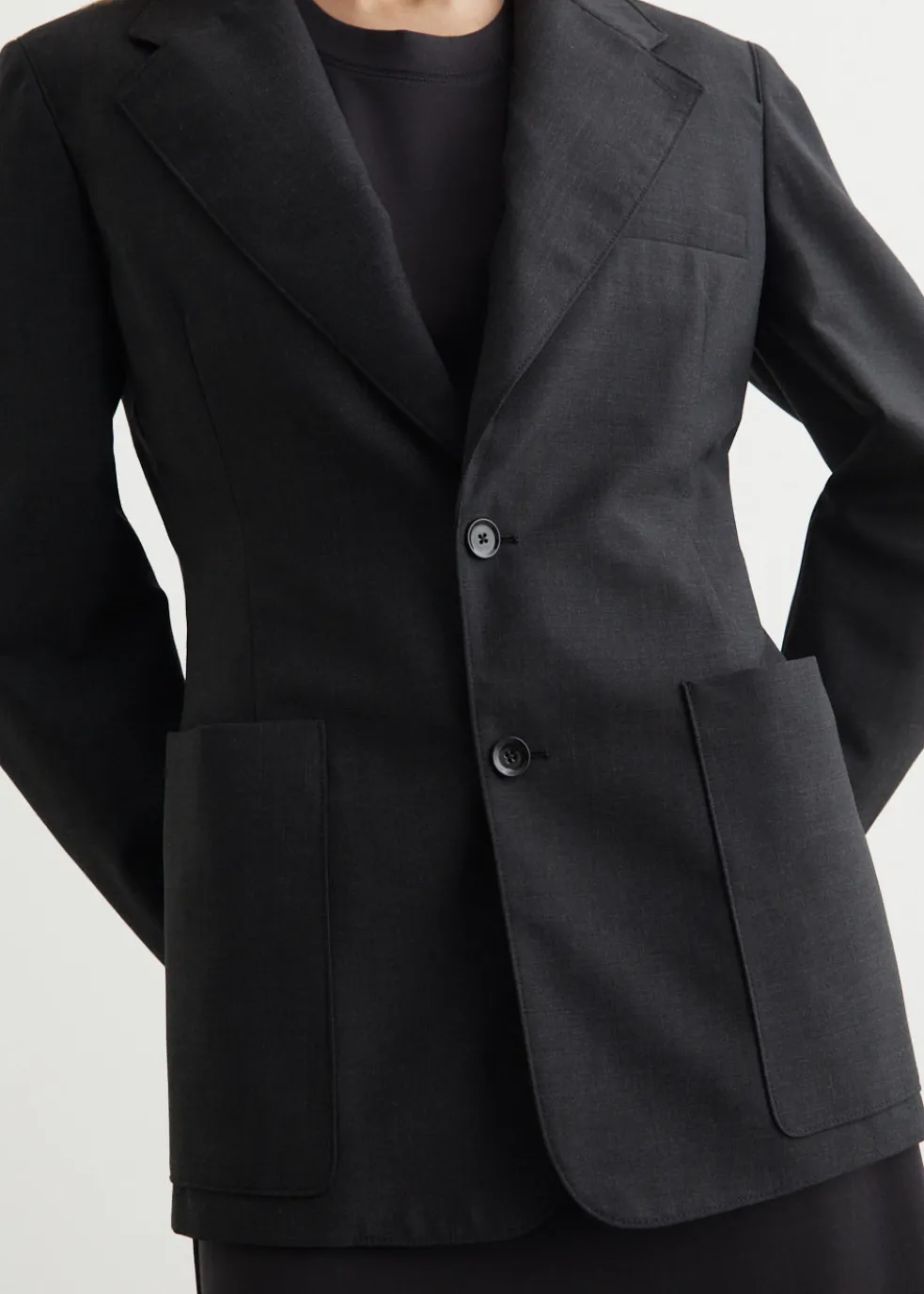 Helmed by Christopher Lemaire and Sarah-Linh Tran, the Lemaire brand offers timeless Parisian style that is sophisticated, inclusive and rich in cultural influence. Crafted from tropical poly-wool, the Single Breasted Fitted Tailored Jacket is a classic single-breasted design, showcasing classic tailoring details, detailed with two patch pockets at the hip to accentuate the feminine hourglass silhouette.
