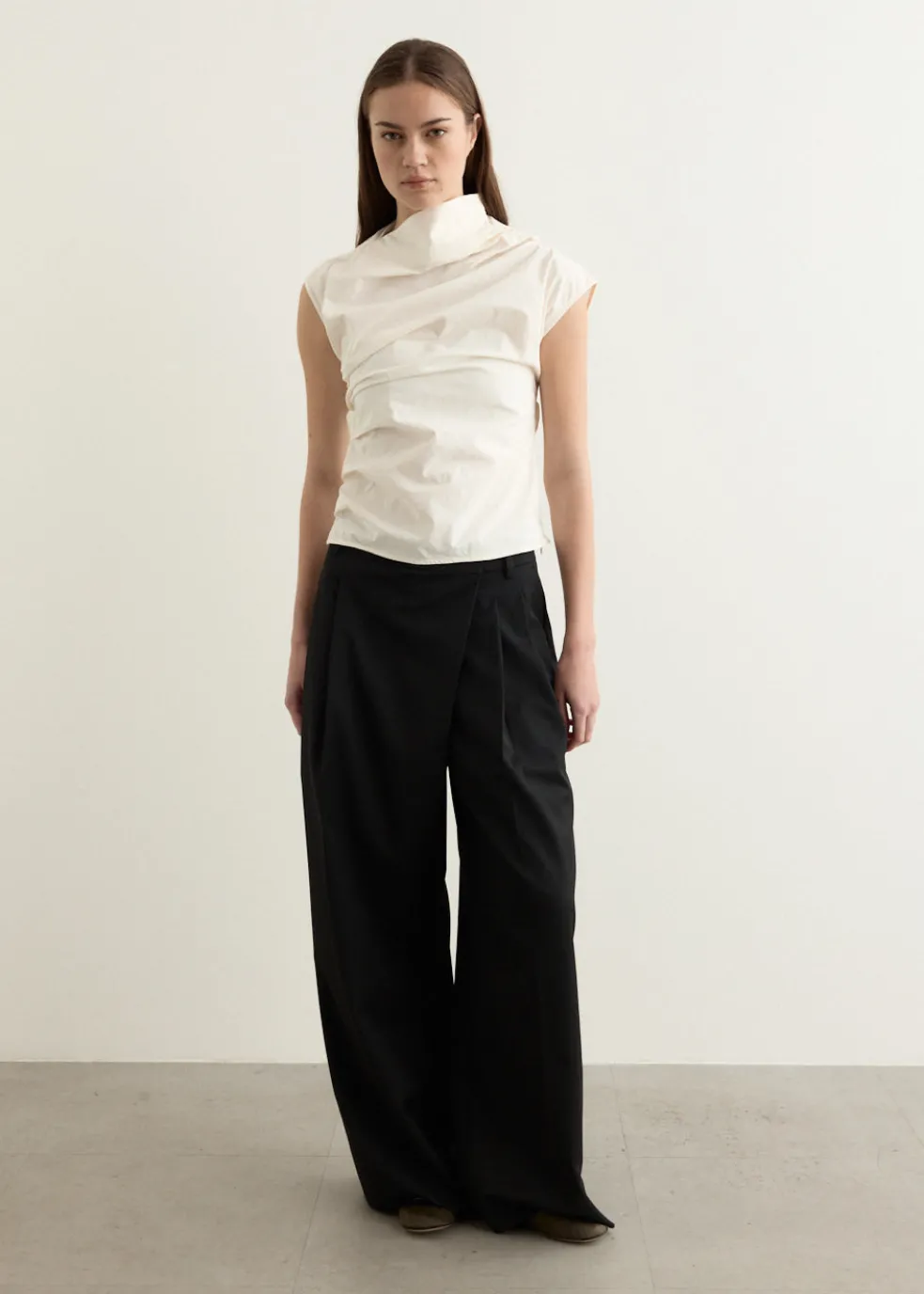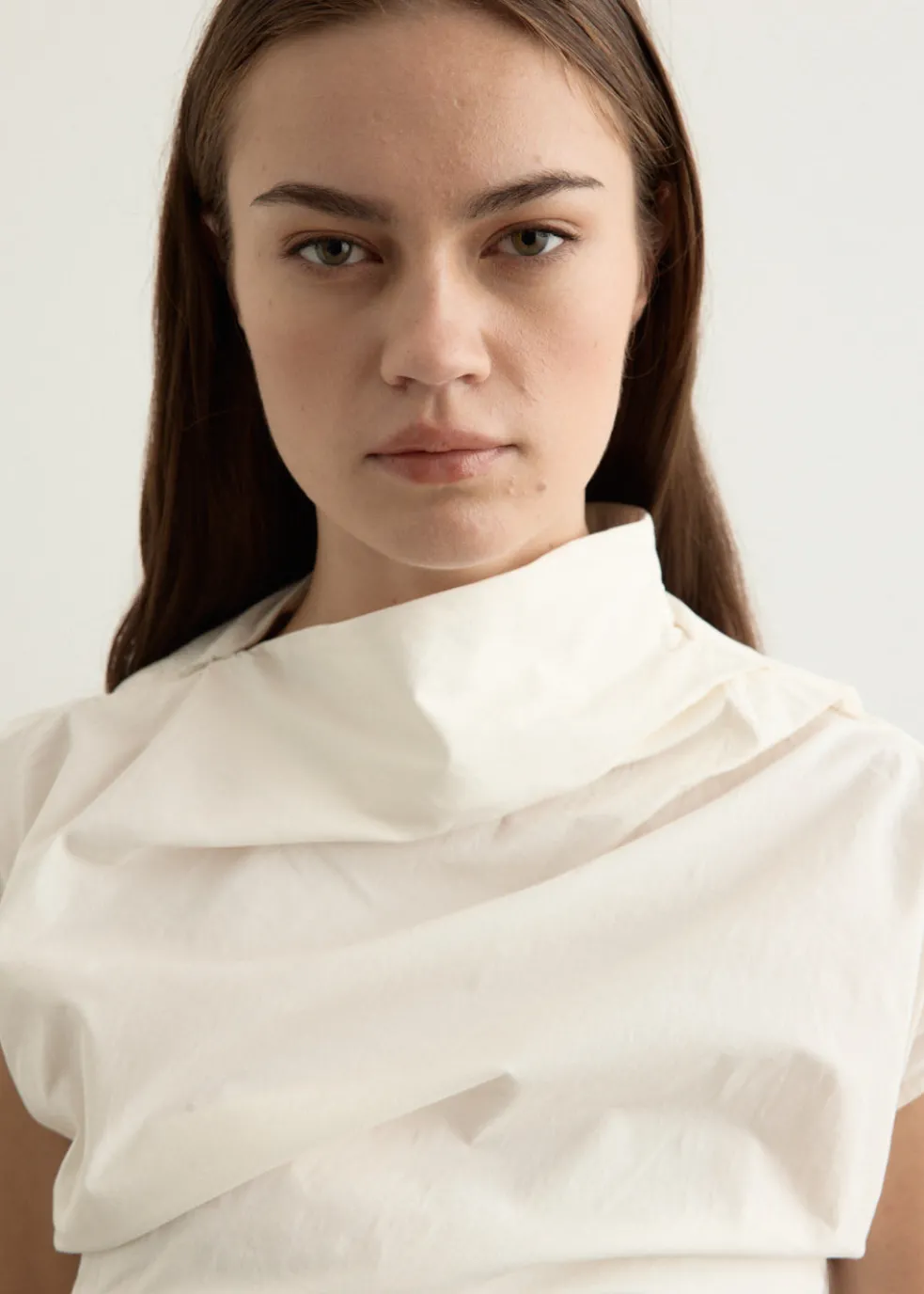 Danish label Ganni blends streetwear trends with a playful touch of humour through bold prints and colour palettes, voluminous silhouettes and easy-to-wear fabrics. Crafted from stretch cotton, the Stretch Cotton Ruched Top is cut to a slim fit and features an asymmetric neckline, cuffed sleeves and all-over ruching details. Wear with jeans for an elevated casual look. or with tailored trousers and heels for a night-out.