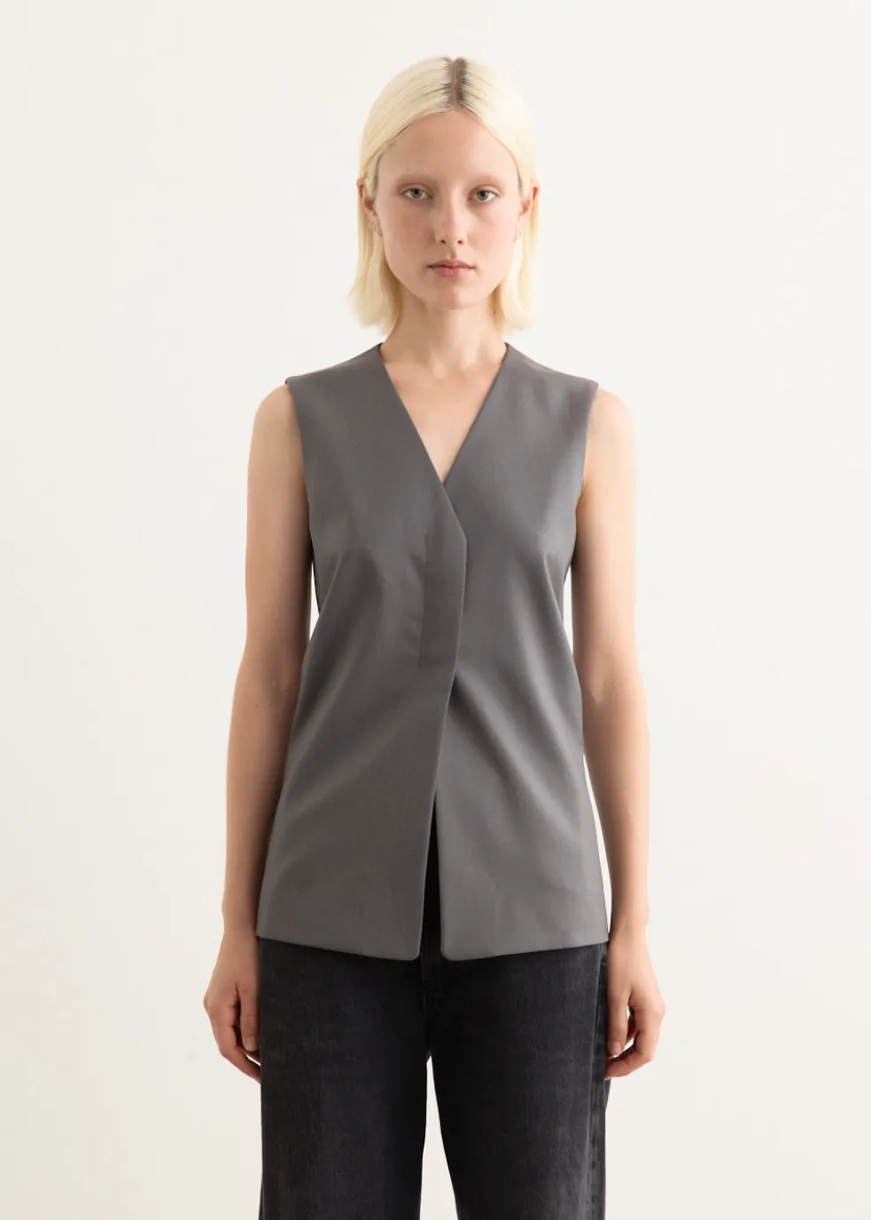 Birthed in Seoul, Low Classic’s philosophy revolves around beauty through simplicity and is delivered via updated, classic silhouettes. Crafted from a wool blend, the Waist Point Wool Vest boasts a sleek design with a v-neckline and a hidden button closure, making it ideal for standalone wear or layering.