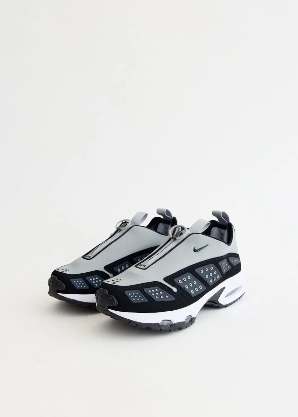 Nike has imagined and created functional, fashion-forward footwear and apparel in reflection of its sportswear roots since 1964. Reintroduced from its pioneering ’99 design, the Air Max SNDR returns with enhanced boldness. This sneaker boasts a unique zip-up design and neoprene-like material, complemented by its gleaming colourway mixing black, silver and anthracite for a futuristic finish. With Max Air cushioning in the heel and Nike Air in the forefoot, it promises unbeatable comfort. Unzipping the cover reveals the code “6453,” representing the global office numbers for Nike’s name spelled on a keypad.