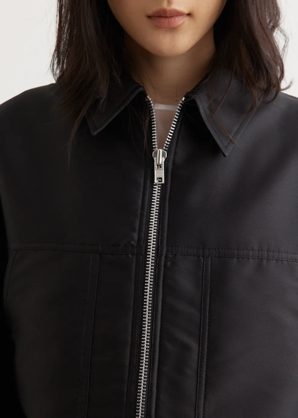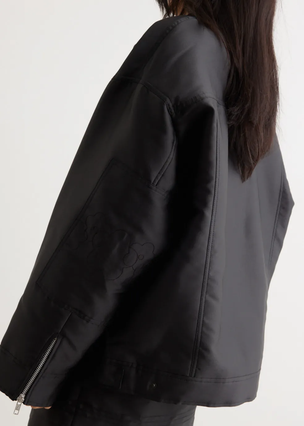 Cecilie Bahnsen partners with Nona Source to create a limited apsule collection, crafted from LVMH’s deadstock fabrics. The collaboration celebrates a shared dedication to sustainable design, reimagining iconic silhouettes and responsible craftsmanship. Crafted from a polyester-silk blend, the Olpa Jacket is an oversized piece with a zip closure and front patch pockets. Its timeless design blends style and functionality effortlessly.